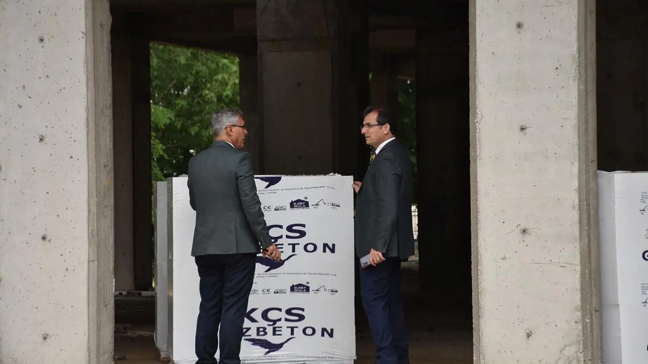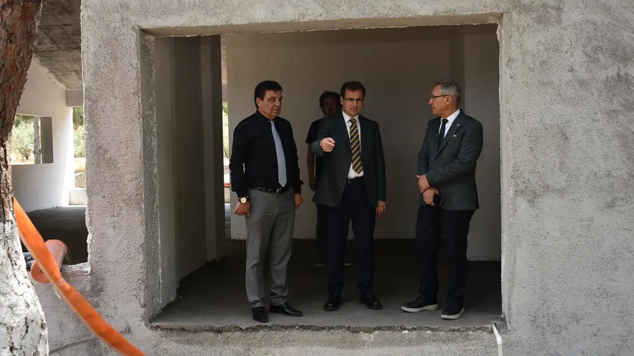 Kaymakam Ali Güldoğan, inşaat alanlarını düzenli olarak kontrol ediyor. İlçe Milli Eğitim Müdürü Mahmut Yenen ile birlikte çalışmaları yerinde denetliyor.
