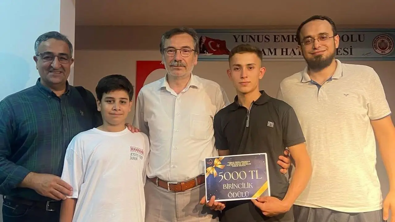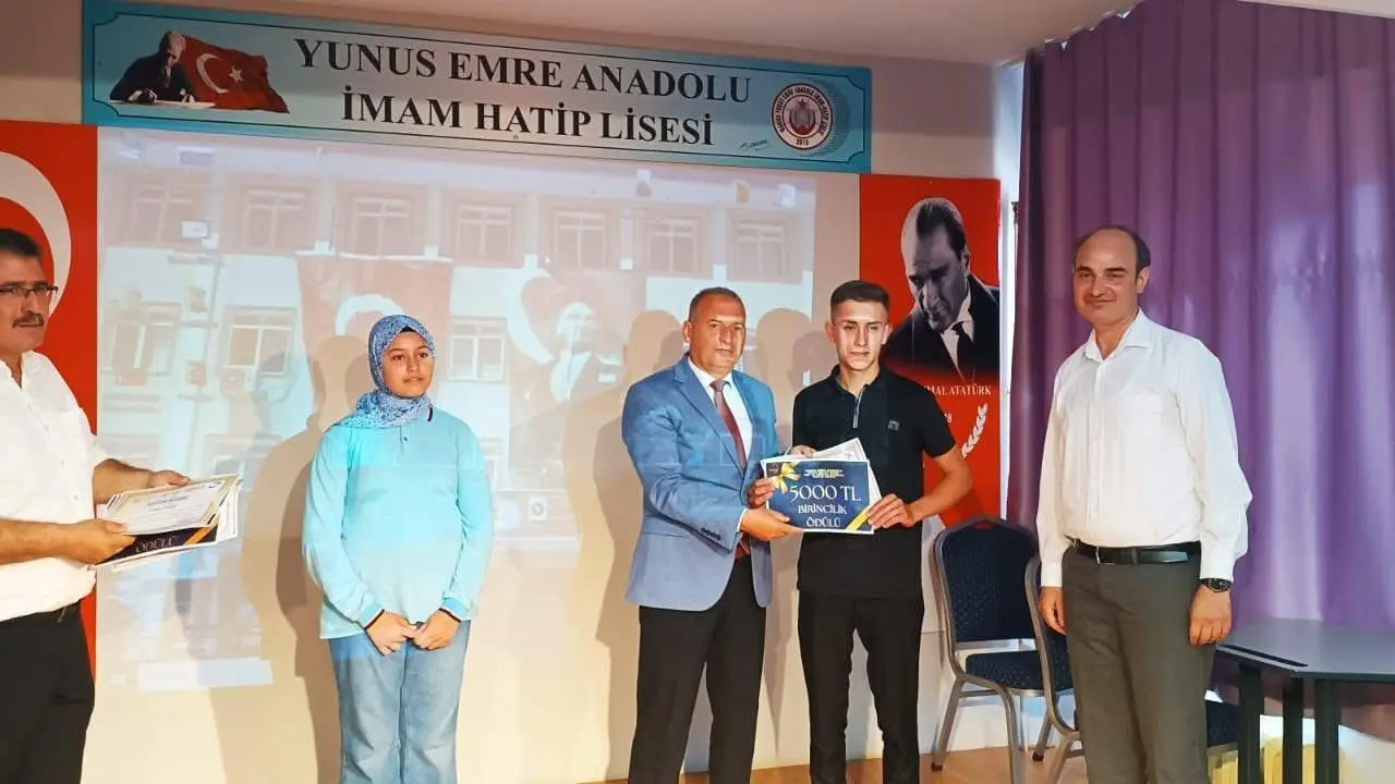 Yunus Emre Anadolu İmam Hatip Lisesi'nde ödülünü alan öğrenci, okuluna döndü. Arkadaşları ve öğretmenleri kendisini büyük bir coşkuyla karşıladı.