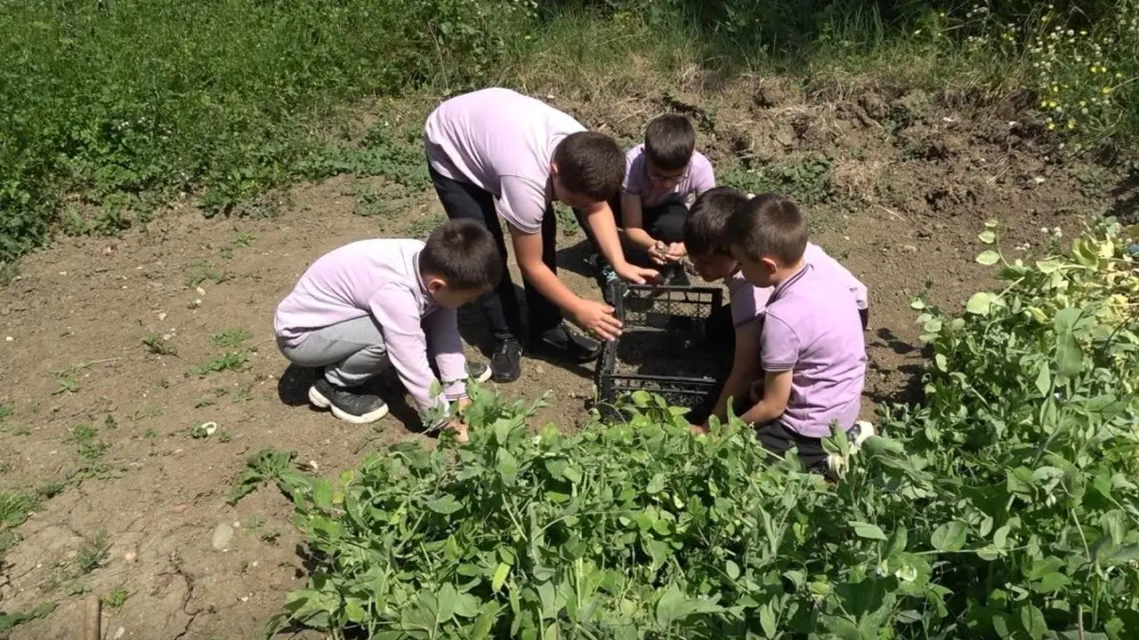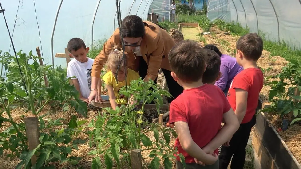 Okul bahçesindeki serada öğrenciler ata tohumlarından elde edilen fideleri yetiştiriyor. Evsel atıklardan kompost gübre üretimi yapılarak sürdürülebilir tarım destekleniyor.
