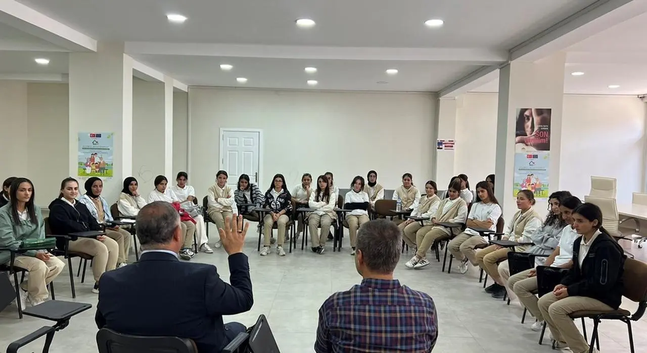 Nazmiye Demirel Kız Mesleki ve Teknik Anadolu Lisesi öğrencileri, Aile ve Sosyal Hizmetler İl Müdürlüğü'nü ziyaret etti. Kurum yetkilileri, sosyal hizmetlerin kapsamı ve meslek elemanlarının görevlerini anlattı.