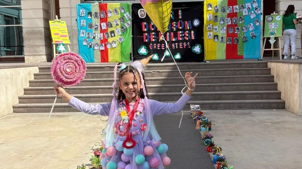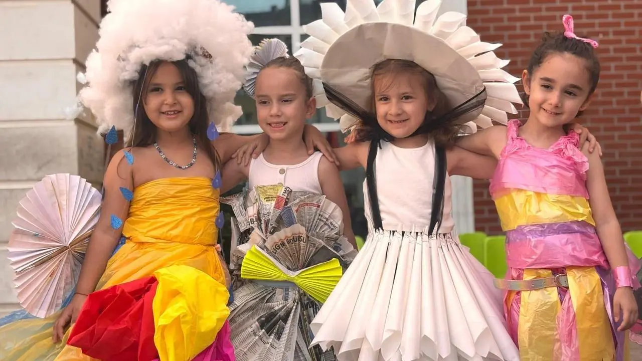 İlkokul öğrencileri, kullanılmış plastik şişeler ve gazete kağıtlarından özgün kıyafetler tasarladı. Geri dönüşüm defilesi, katılımcılardan büyük beğeni topladı.