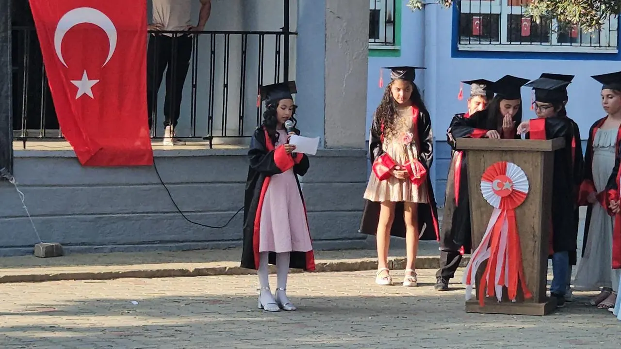 Törende konuşan öğrenci temsilcisi Büşra Maraş, öğretmenlerine teşekkürlerini iletti. Sadece akademik değil, dostluk ve sevgiyi de öğrendiklerini vurguladı.