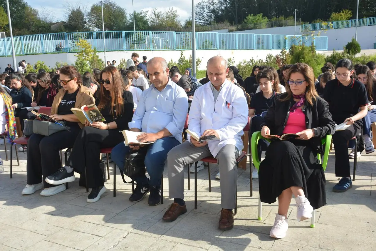 Ünye Fen Lisesi bahçesinde düzenlenen etkinliğe öğrenciler, öğretmenler ve veliler katıldı. Hep birlikte kitap okuyarak teknoloji bağımlılığına karşı bilinç oluşturuldu.
