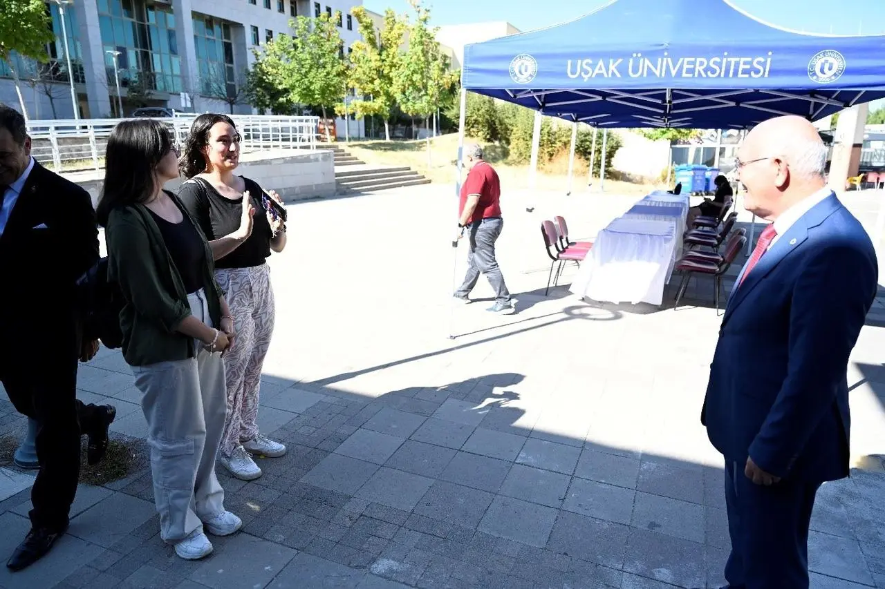 Uşak Üniversitesi Rektörü Prof. Dr. Ekrem Savaş, yeni öğrencilerin kayıt heyecanına ortak olarak onlarla sohbet etti.