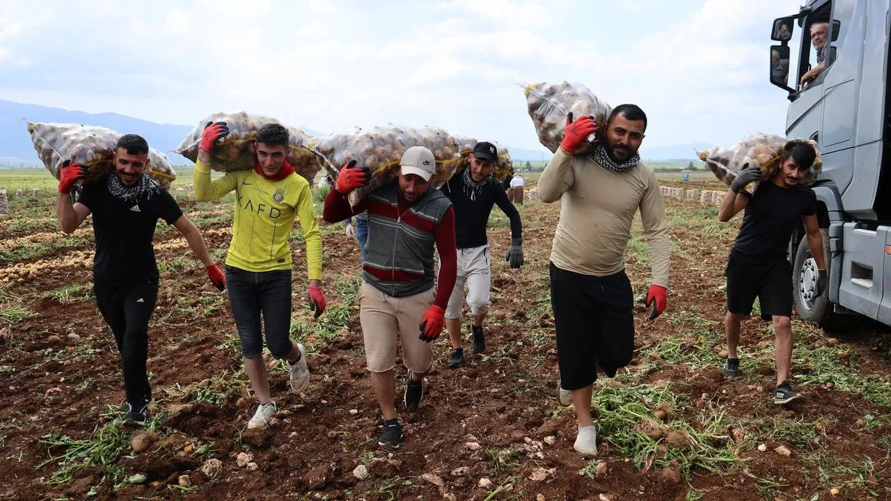 Yükleyici işçiler, günlük ortalama 250-300 ton patates taşıma işlemini gerçekleştiriyor. Afrika sıcaklarına rağmen çalışmalarını sürdüren işçiler, aylık 90-100 bin lira kazanç elde ediyor.