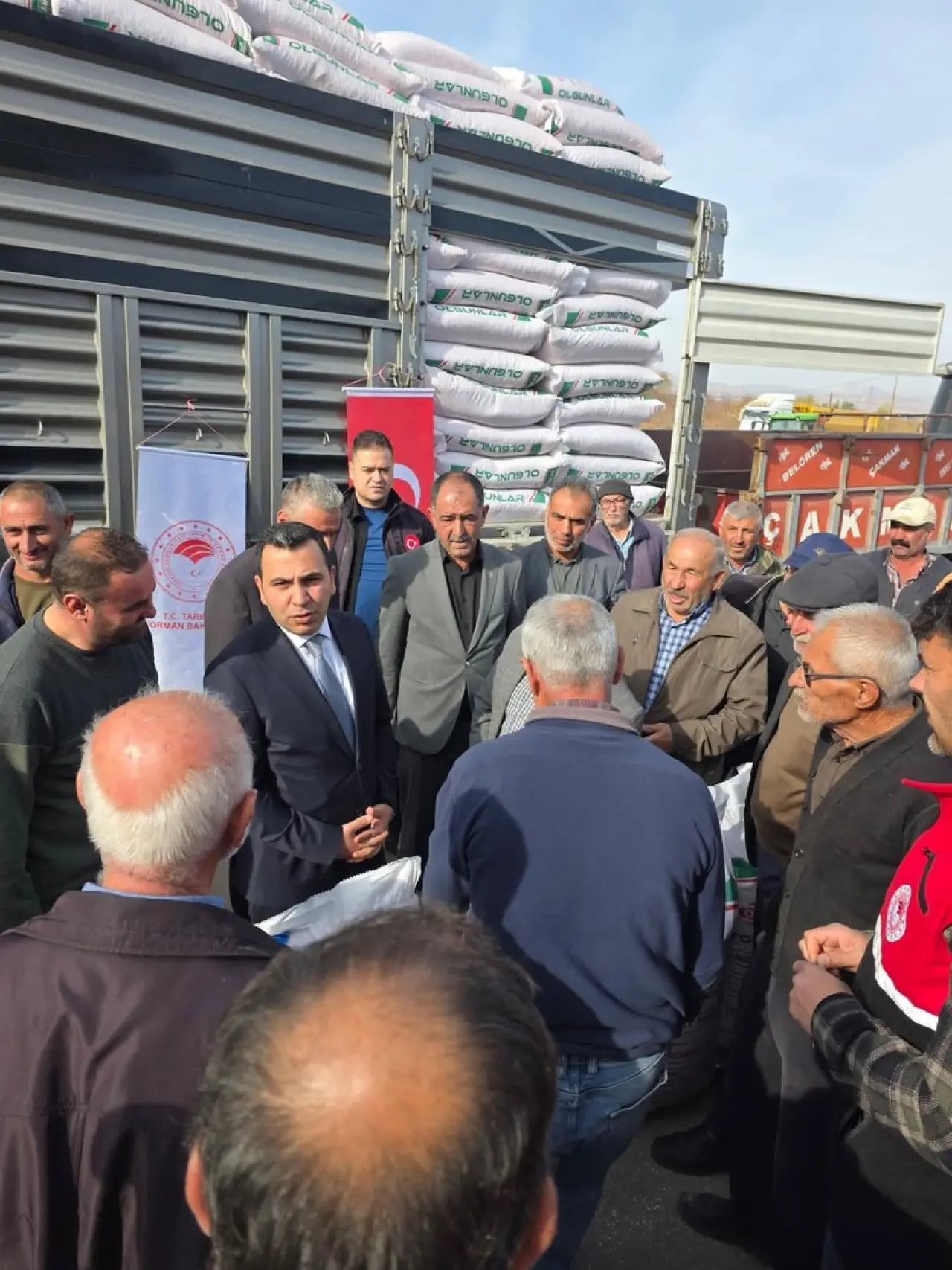 İlçe Kaymakamı Kadir Algın, dağıtım töreninde üretimin bölge ekonomisine katkısını vurguladı. Tohumların verimli hasat getirmesi temennisinde bulundu.