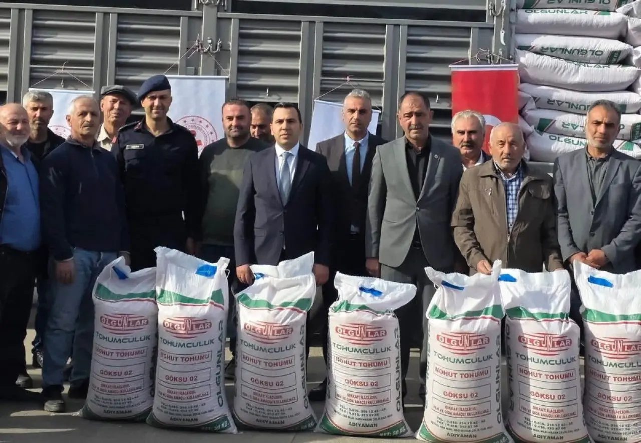 Adıyaman'ın Gölbaşı ilçesinde çiftçilere 50 ton nohut tohumu dağıtıldı.