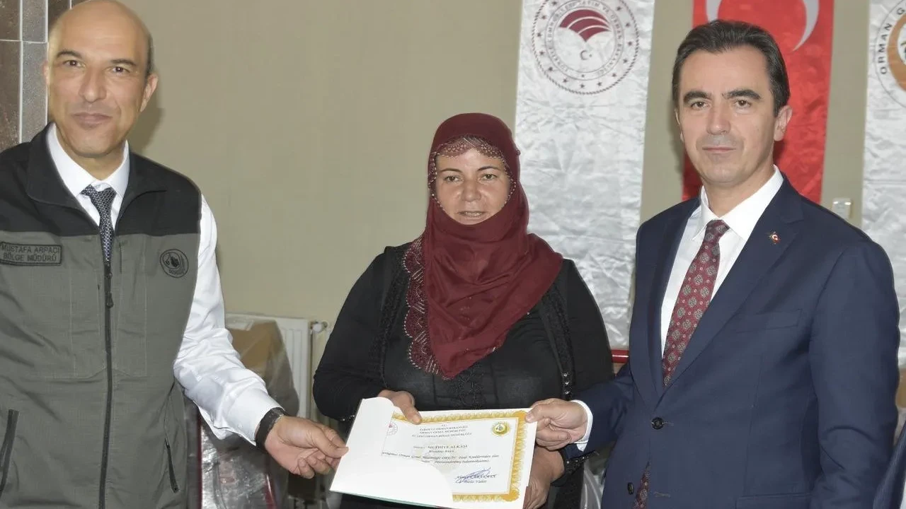 Bitlis'te 14 kadın çiftçiye ORKÖY projesi kapsamında süt sağım makinesi ve sertifikaları dağıtıldı.