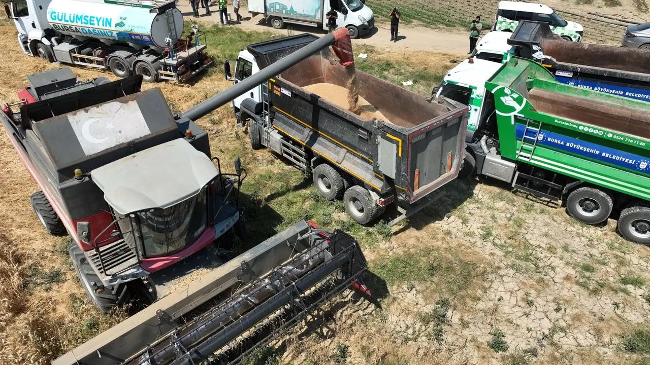 Bursa Büyükşehir Belediyesi'nin 120 dönümlük alanda gerçekleştirdiği buğday ekim projesinin hasat dönemi başladı.