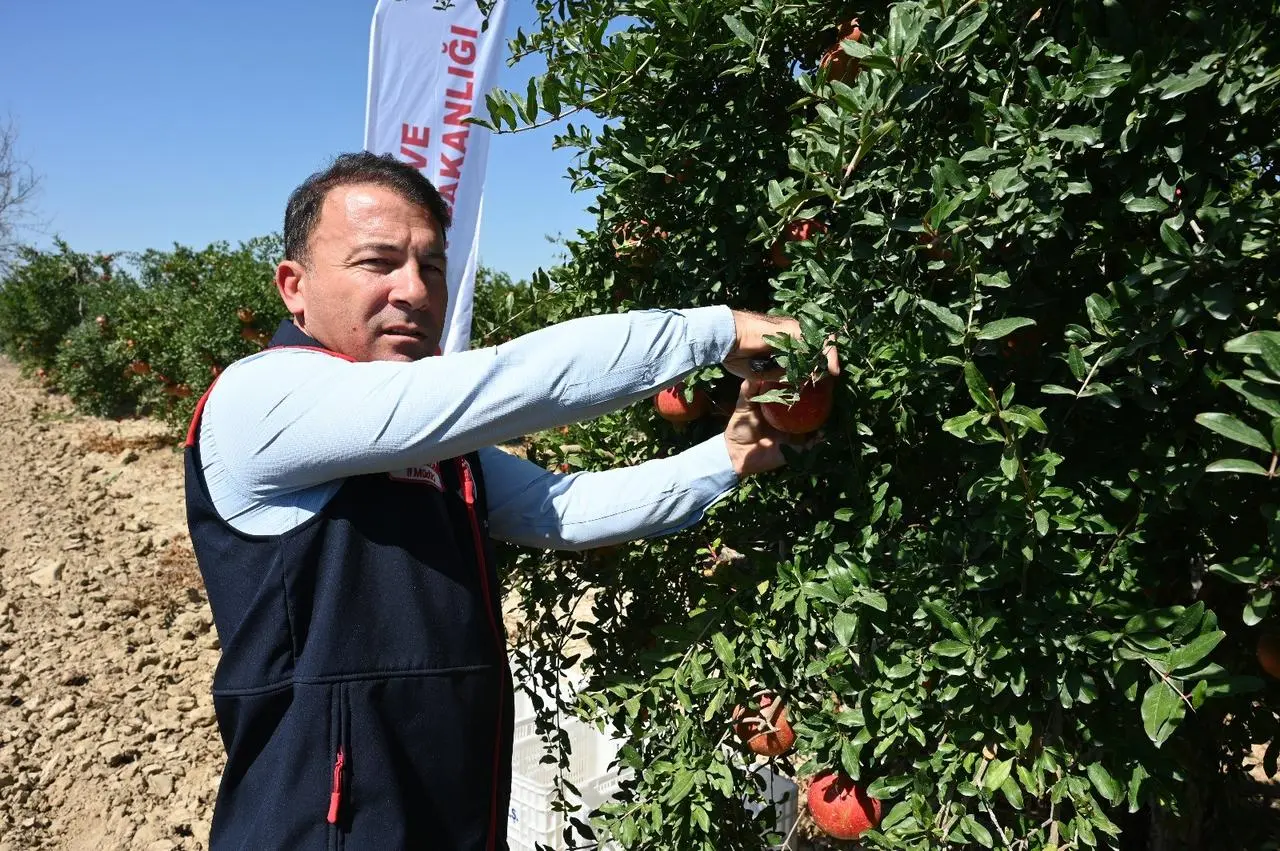 Vali Coşkun ve heyeti, nar bahçesinde temsili hasat gerçekleştirdi. Üreticilerle sektörün sorunları ve çözümleri üzerine görüş alışverişinde bulunuldu.