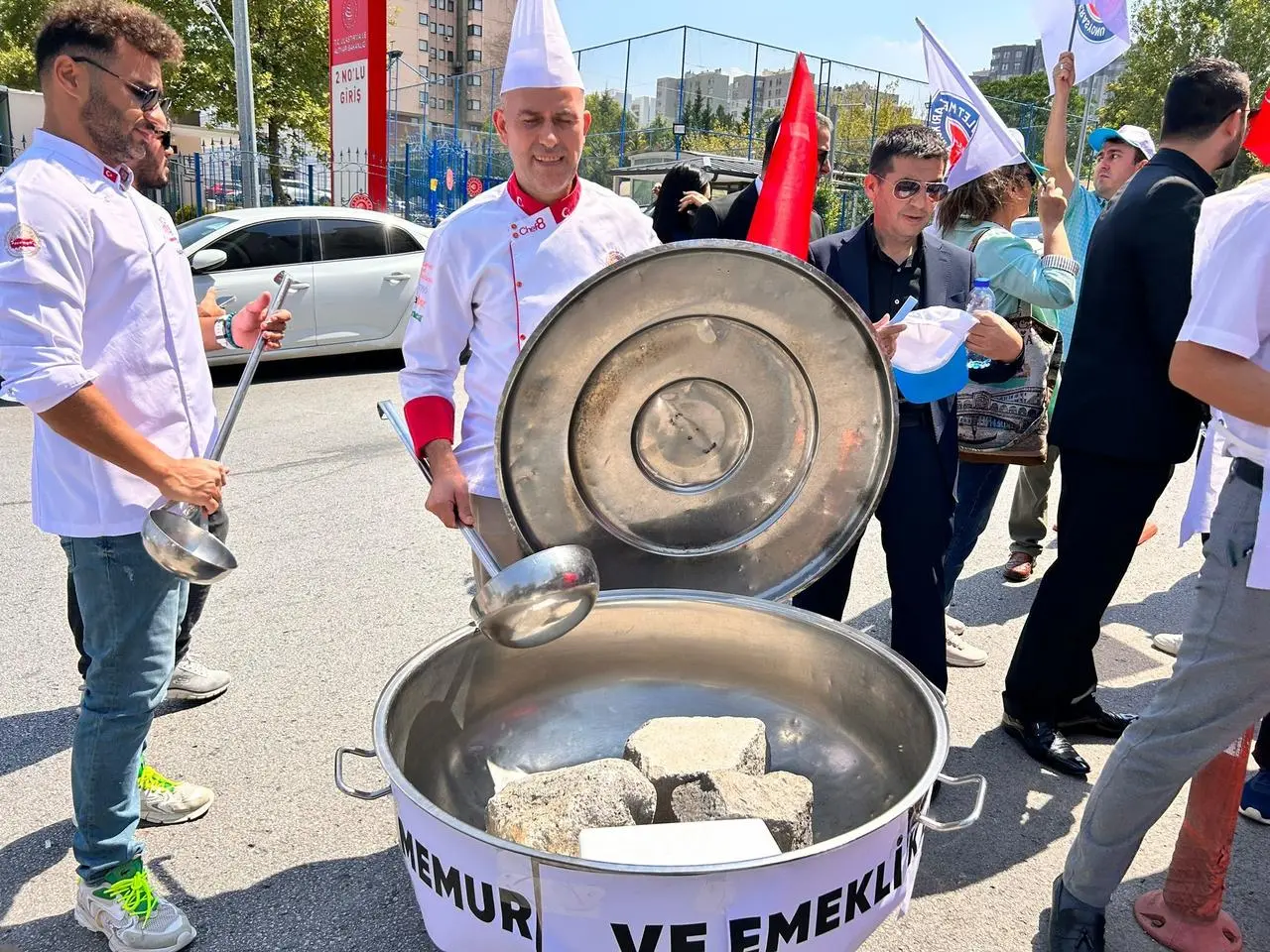 Eylemde, konfederasyon üyeleri balon ve yemek kazanlarıyla tepkilerini gösterdi. Toplu sözleşme sürecinde taraflar arasındaki görüşlerin uyuşmadığı görüldü.