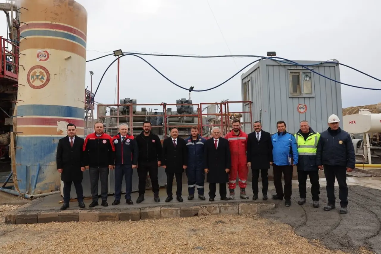 6. kuyudan sıcak su çıkarıldı, proje alanındaki çalışmalar hızla devam ediyor. Vali ve protokol üyeleri bölgeyi ziyaret ederek incelemelerde bulundu.