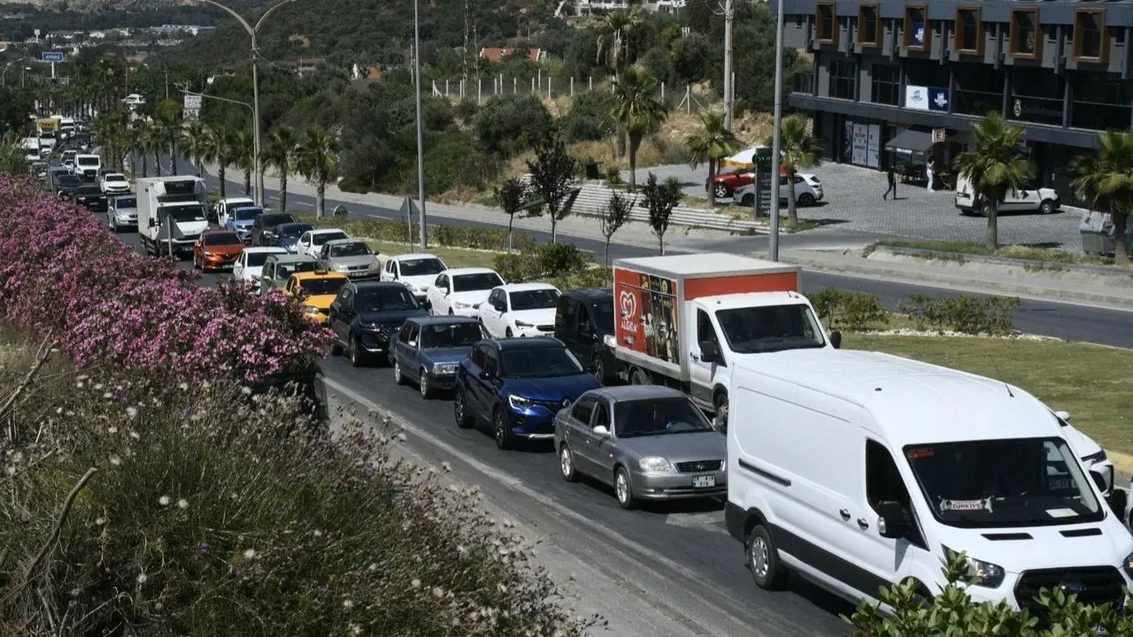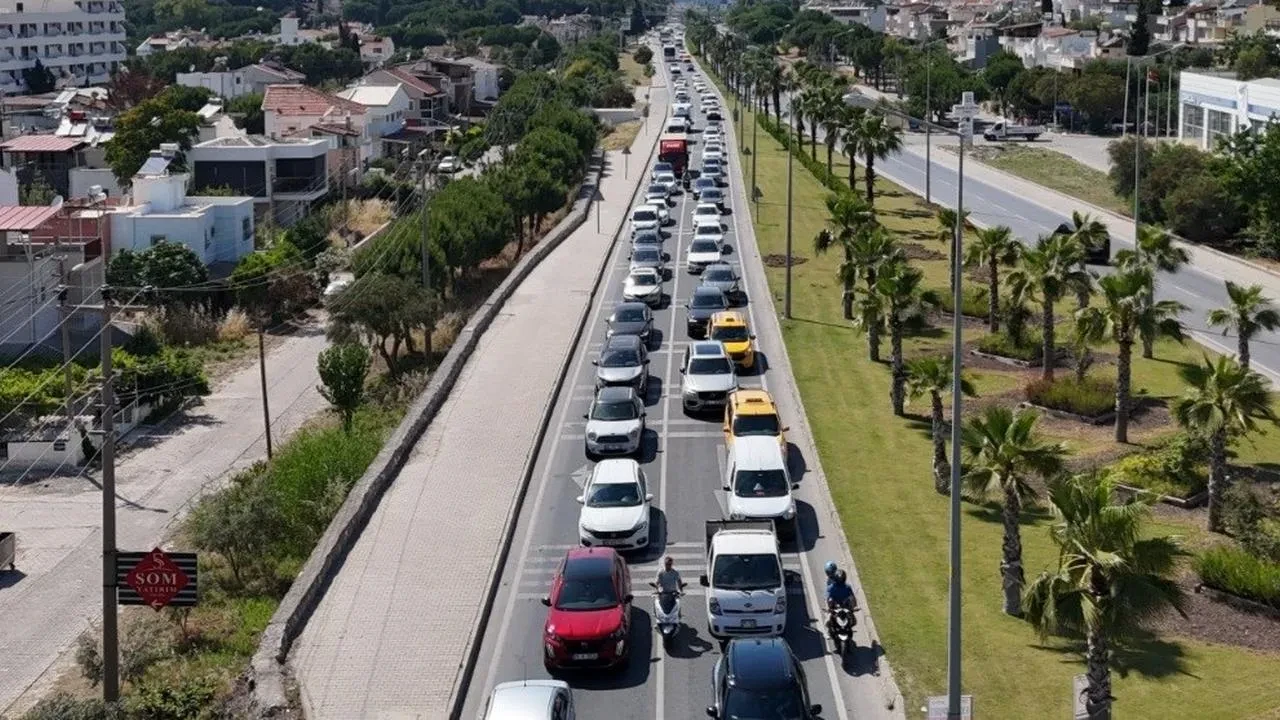 Selçuk girişinde kilometrelerce araç kuyruğu oluştu. Son 24 saatte kente giren araç sayısı 60 bini aştı.