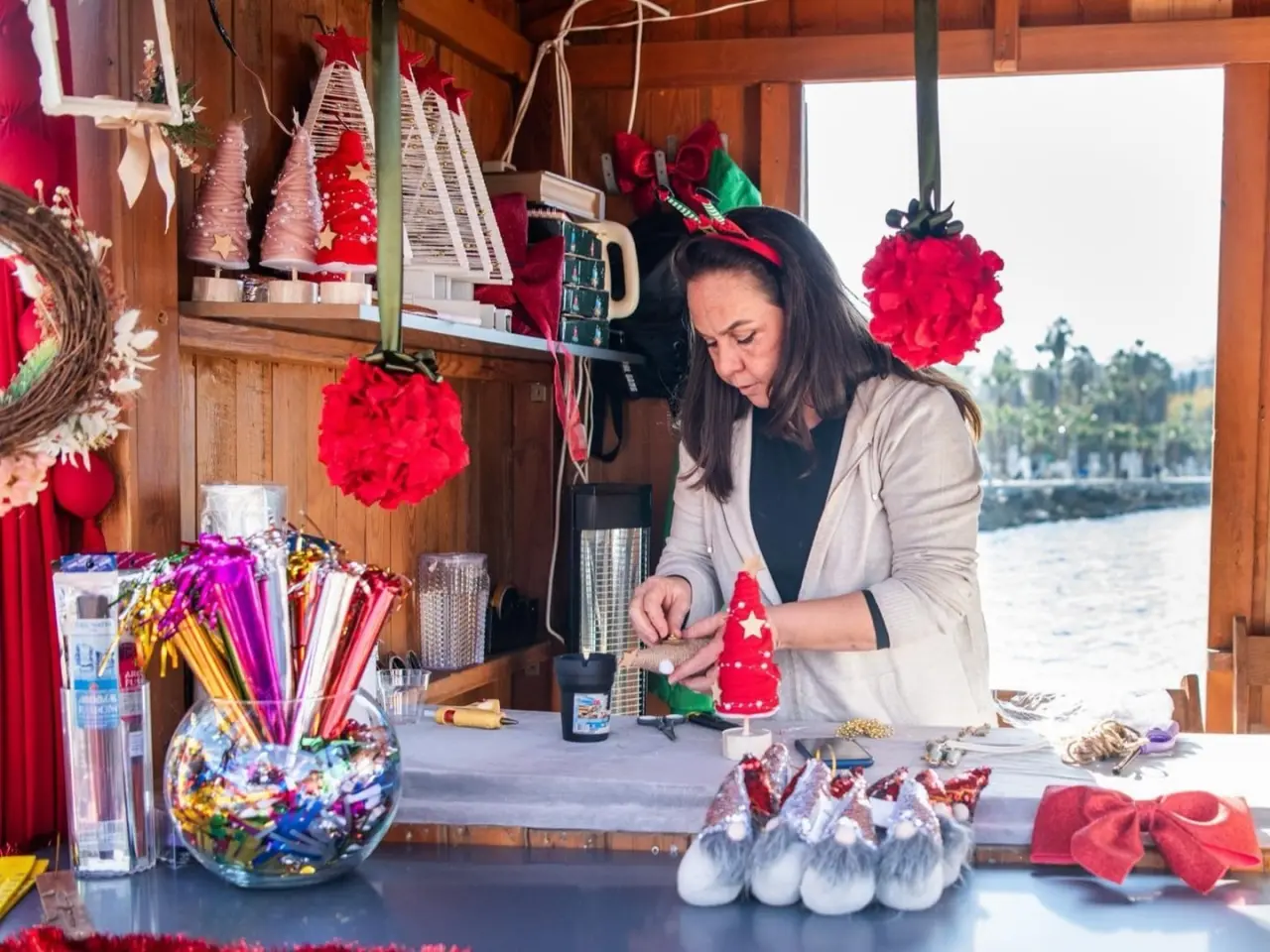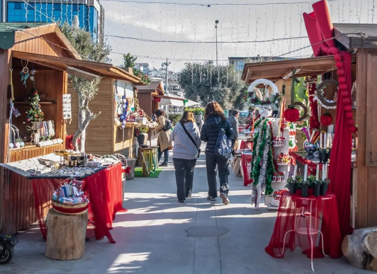 Yılbaşı süsleri ve hediyelik eşyaların satıldığı pazar, renkli görünümüyle ilgi çekiyor. Kent sakinleri yeni yıl sofralarına eşlik edecek tatları burada bulabiliyor.