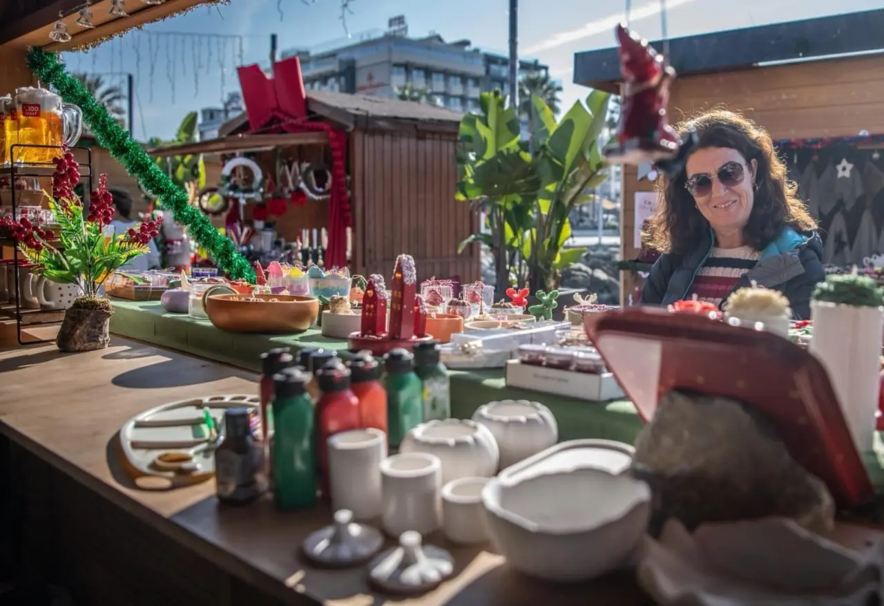 Kuşadası'nda renkli tezgahlarıyla dikkat çeken yılbaşı pazarı, yeni yıla özel hazırlıklarla kuruldu. El Heykeli önünde açılan pazar, haftanın her günü ziyaretçilerini bekliyor.