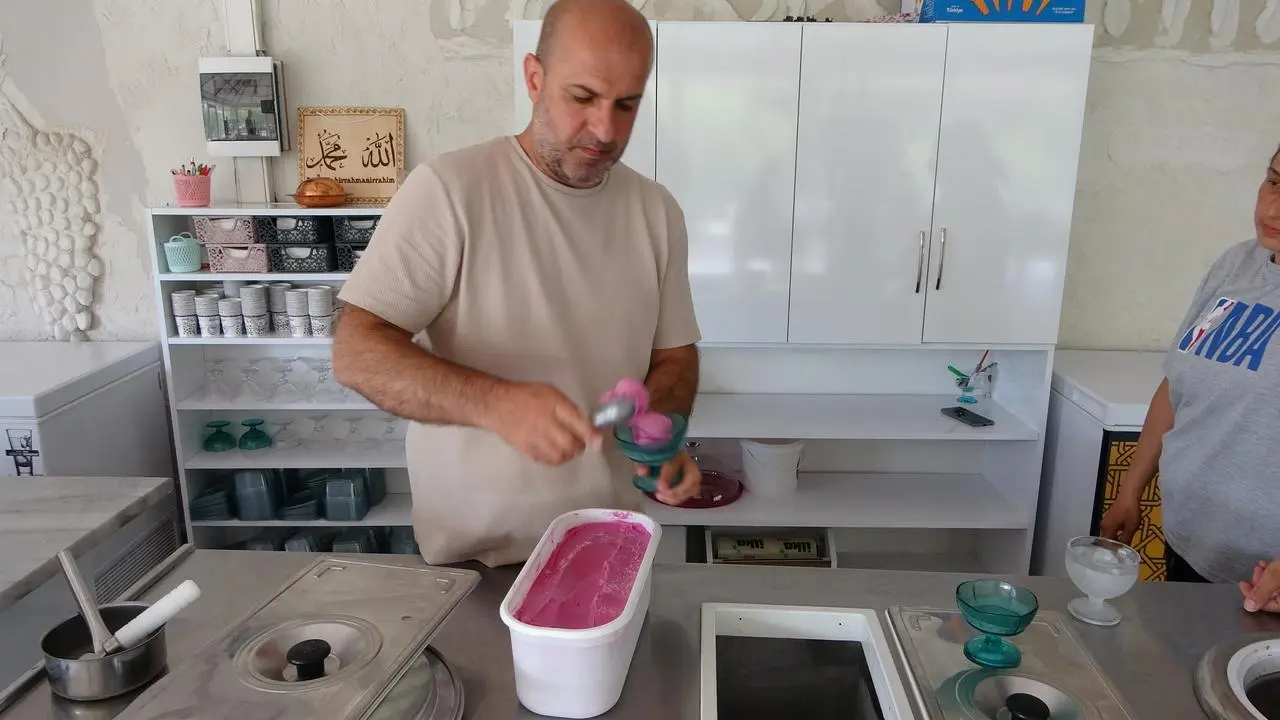 Hakan ve Meral Poyraz Üge çifti tamamen doğal yöntemlerle mor reyhan dondurması üretiyor. Üretimde hiçbir katkı maddesi kullanılmadan hazırlanan dondurma, kısa sürede ilgi gördü.