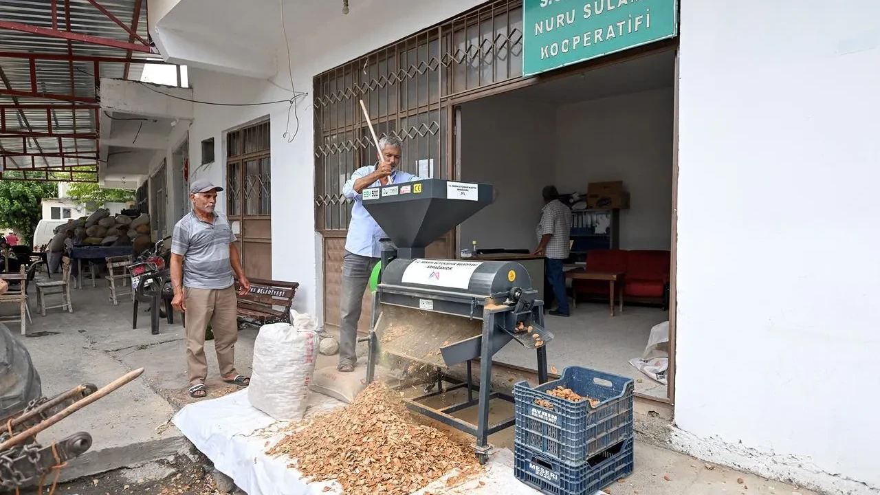Mersin’de üreticilere sağlanan badem kabuk soyma makinesi desteği, iş gücünden büyük tasarruf sağladı. Makineler sayesinde 10-12 kişinin bir günde yapacağı iş, 2 saatte tamamlanıyor.