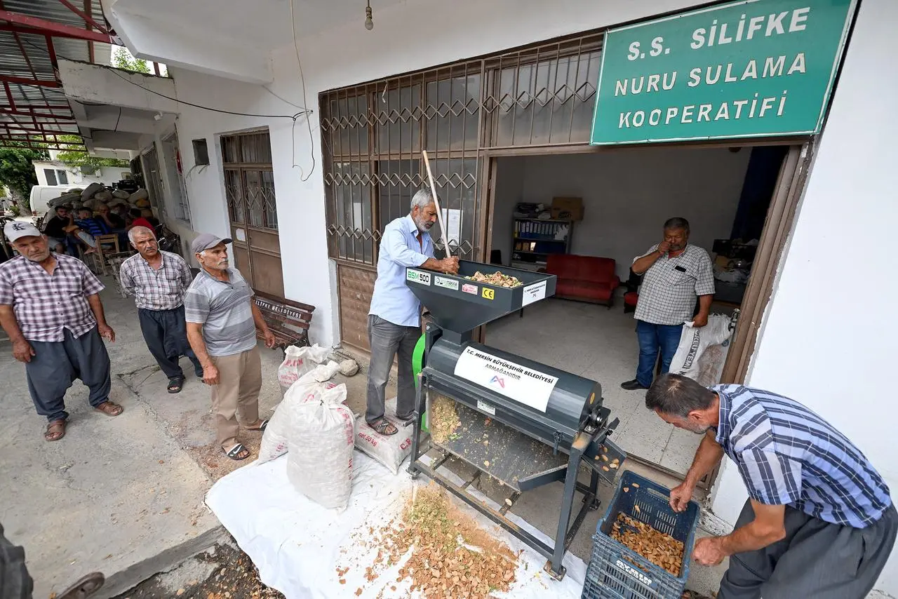 Bu yıl içinde 5 adet badem kabuk soyma makinesi, 11 mahalleye ulaştırıldı. Silifke’ye bağlı Nuru Mahallesi, destekten yararlanan bölgelerden biri oldu.