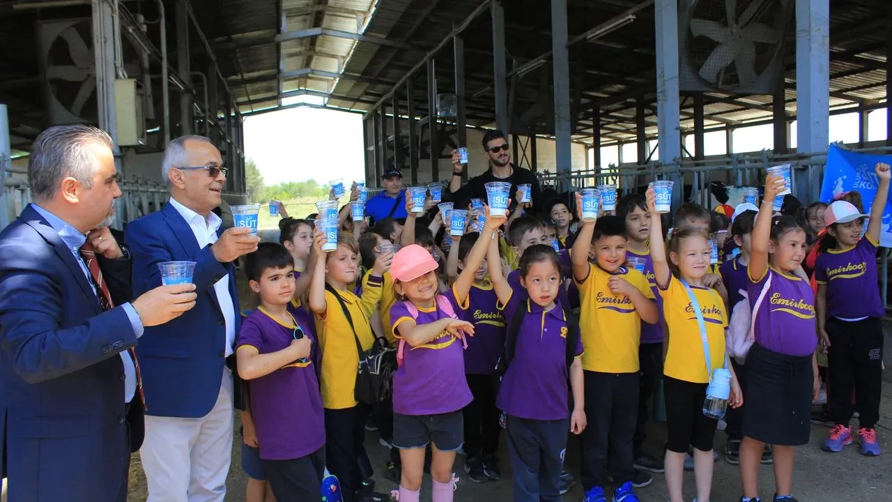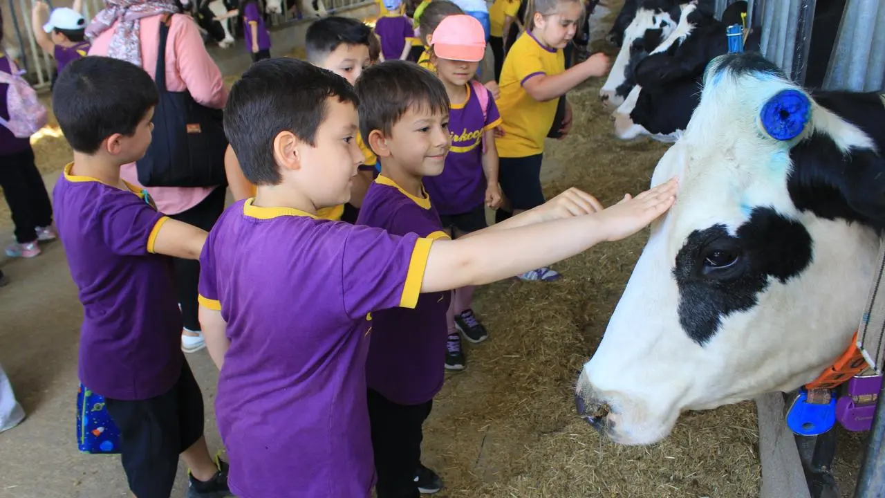 Emir-Koop İlkokulundan gelen 100'e yakın öğrenci çiftlikte keyifli anlar yaşadı. Öğrenciler hem süt içti hem de büyükbaş hayvanları yakından tanıma fırsatı buldu.
