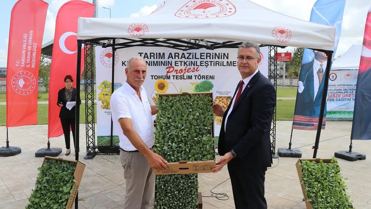 Samsun'da Bafra Ovası'nda ihracata uygun sebze üretimi için çiftçilere fide dağıtımı yapıldı.