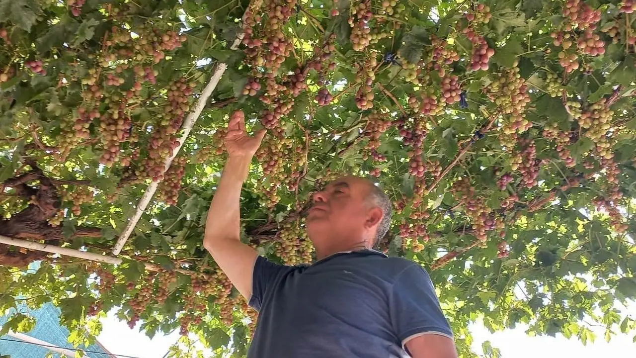 Konak Mahallesi'nde ikamet eden 63 yaşındaki Bekir Yılmaz, haziran başından itibaren üzüm hasadına başladı. Evinin önündeki çardakta yetiştirdiği Uslu cinsi üzümler erken olgunlaşma özelliğiyle dikkat çekiyor.
