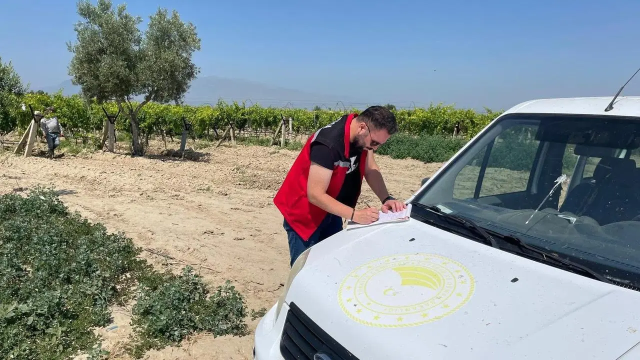 Sarıgöl ilçesinde tarım ekipleri, 2025 yılı üzüm hasadı öncesinde bağlarda pestisit denetimlerini titizlikle sürdürüyor.