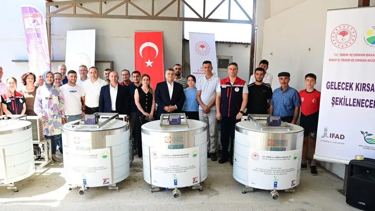 Sinop'ta süt üreticilerine destek kapsamında yüzde 75 hibeli süt soğutma tankları sahiplerine teslim edildi.