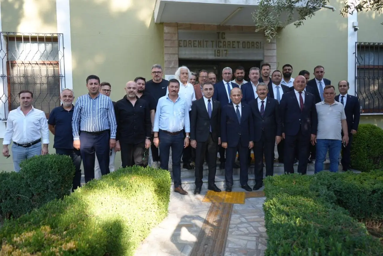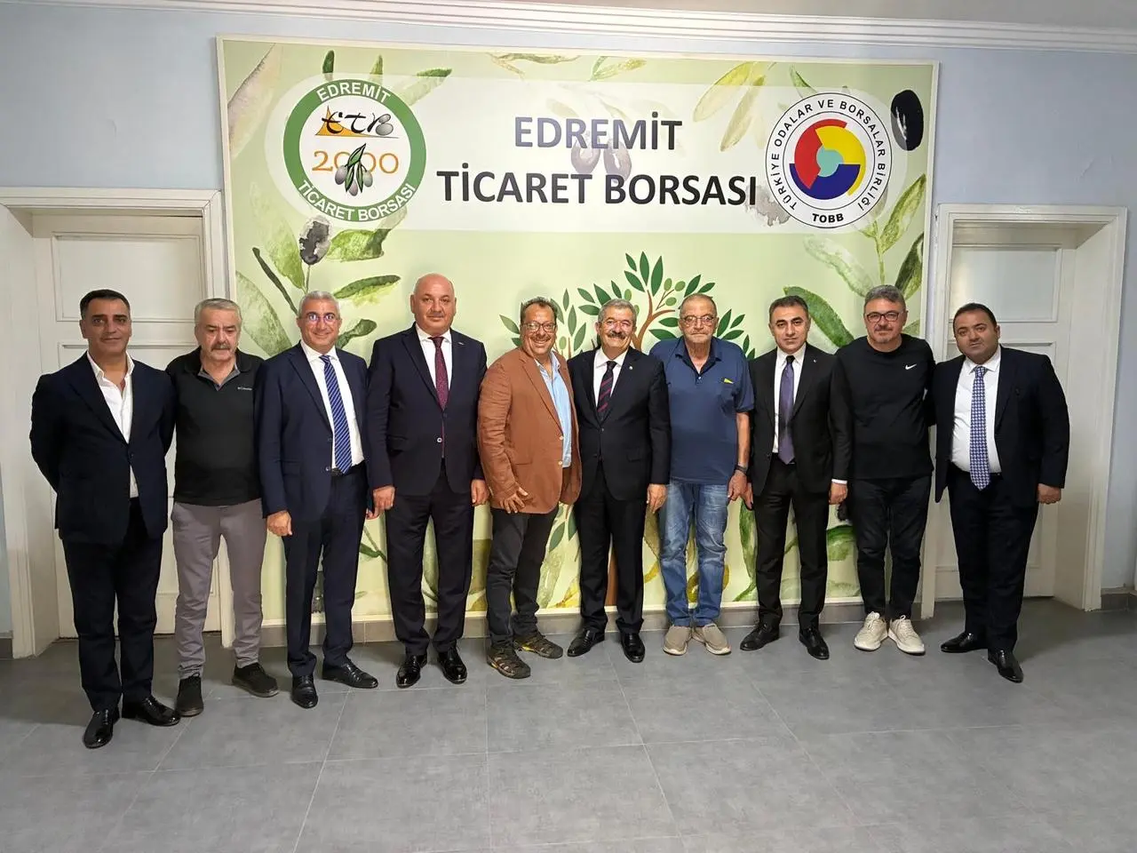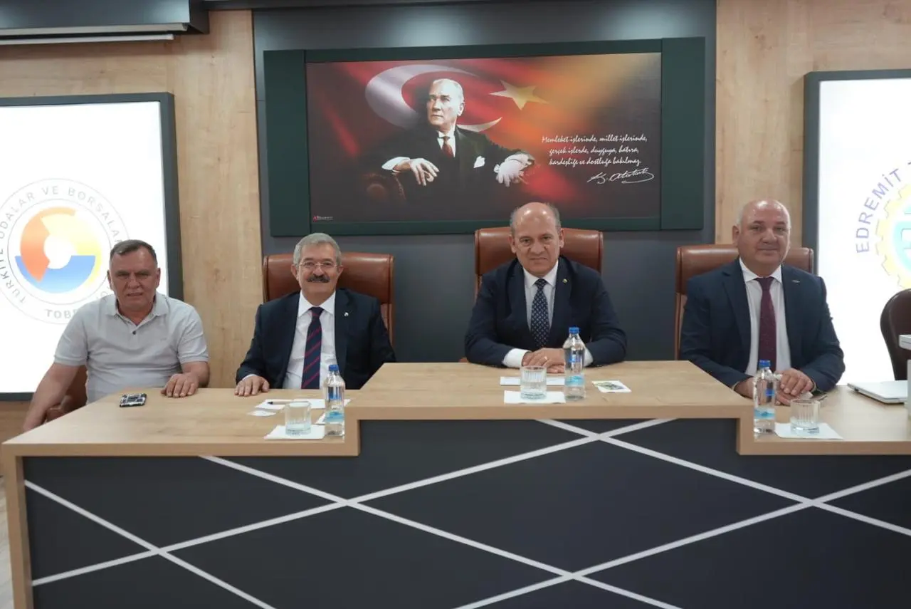 Balıkesir'in Edremit ilçesinde Ticaret Odası ve Borsası ile bir araya gelen heyet, fuar davetinde bulundu. Deprem nedeniyle geçmiş olsun dilekleri ilettiler.