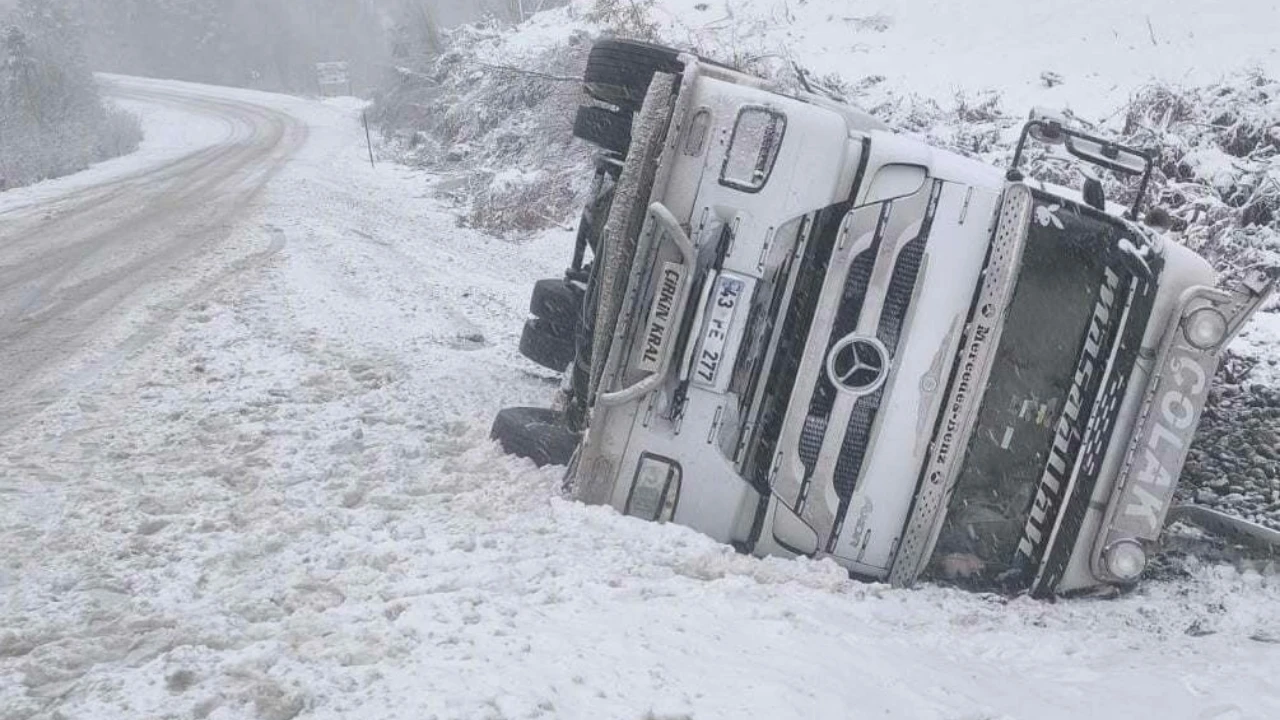 Kaza, İnegöl ile Kütahya’nın Domaniç ilçesini birbirine bağlayan karayolu üzerinde, Arapoturağı mevkiinde meydana geldi. 43 PE 277 plakalı tır, sürücüsü İsmail K. (41) yönetimindeyken kar yağışı nedeniyle kontrolden çıktı. Savrulan tır, yol kenarına çıkarak devrildi.