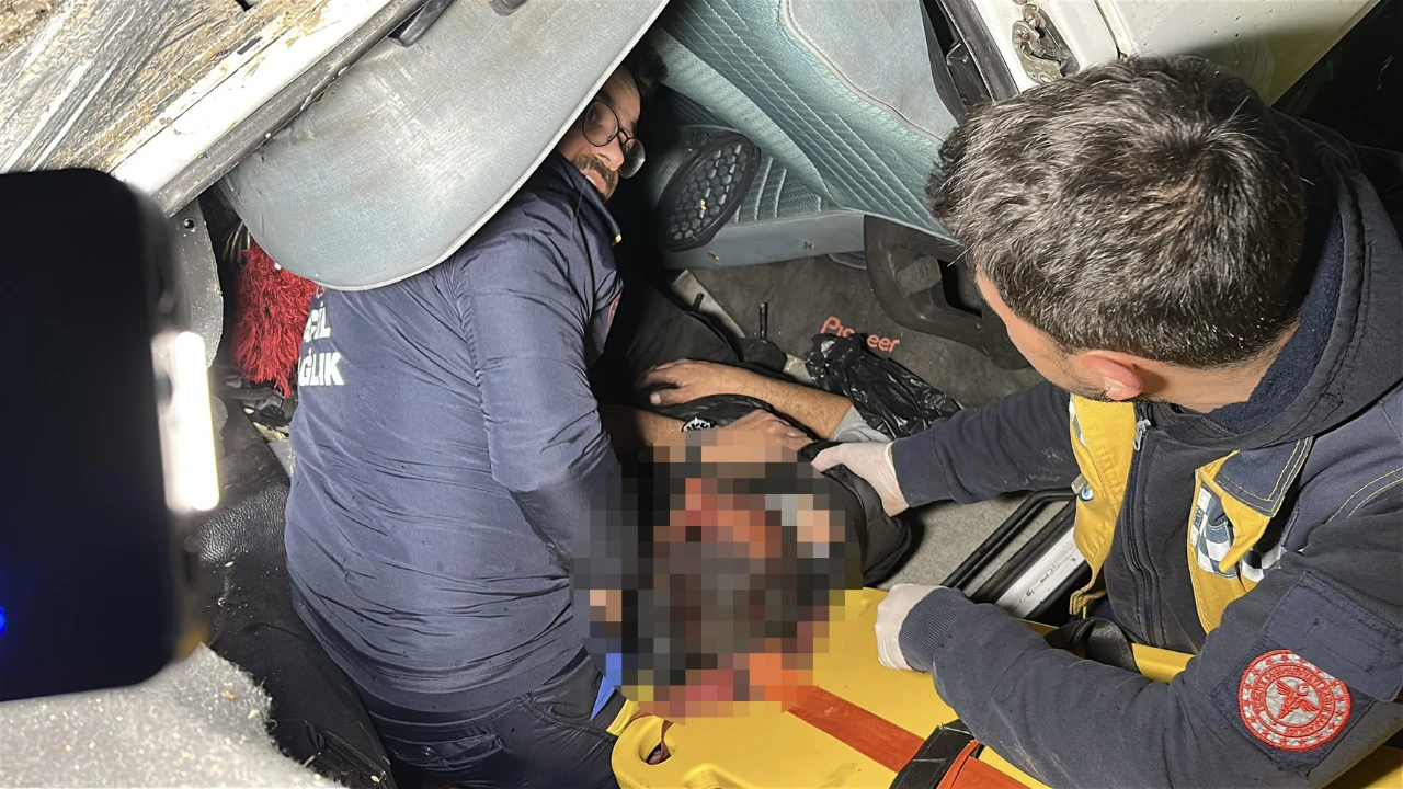R.Ö., araçtan çıktıktan sonra yaklaşık 100 metre yamaçtan tırmanarak devriye gezen trafik polislerinden yardım istedi. Olay yerine kısa sürede sağlık, jandarma ve itfaiye ekipleri sevk edildi. Ekipler, çevredeki vatandaşların yardımıyla sürücü B.Ö.’yü sıkıştığı yerden kurtardı.