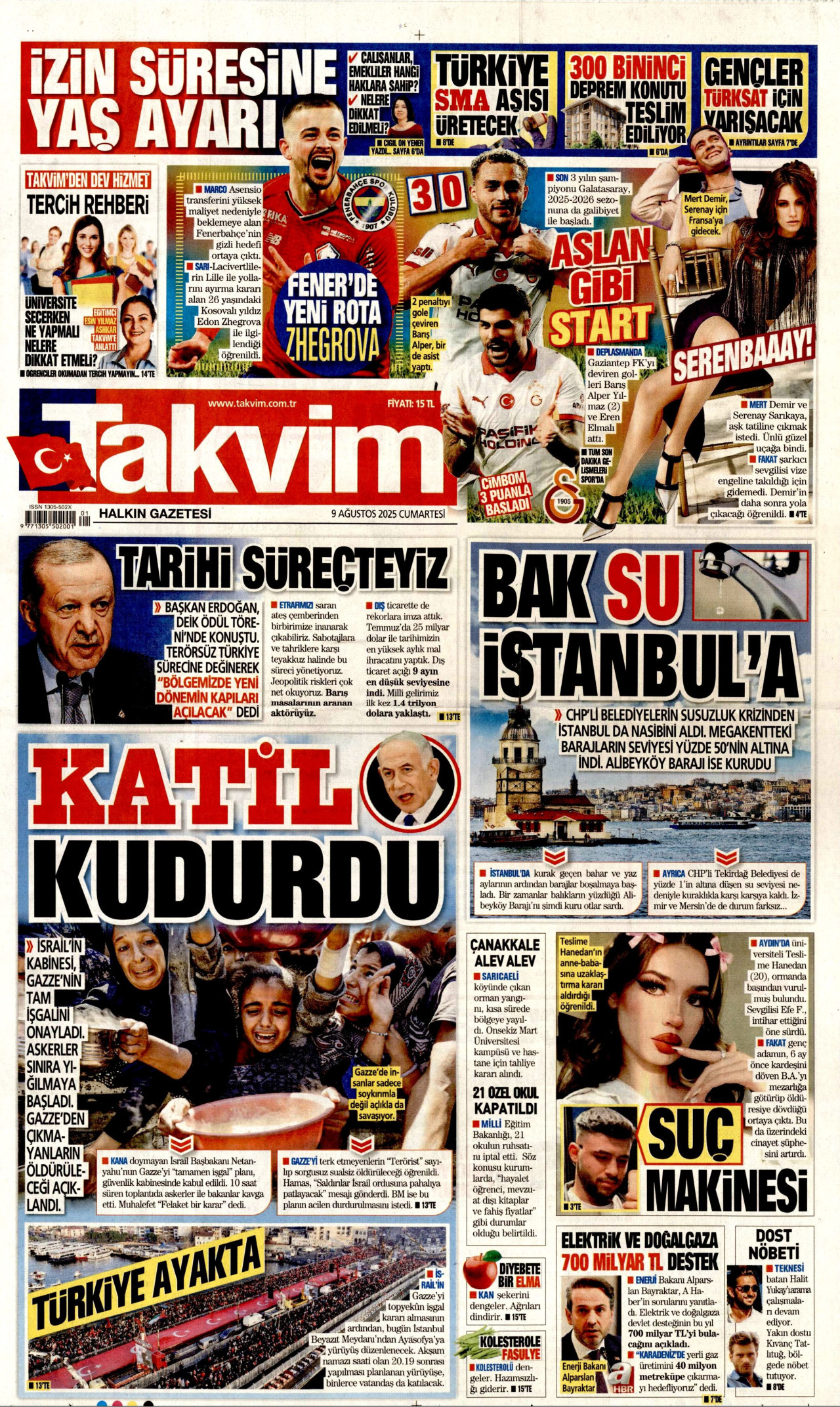 TAKVİM - 15 Aralık 2025, Pazartesi Günü Manşeti
