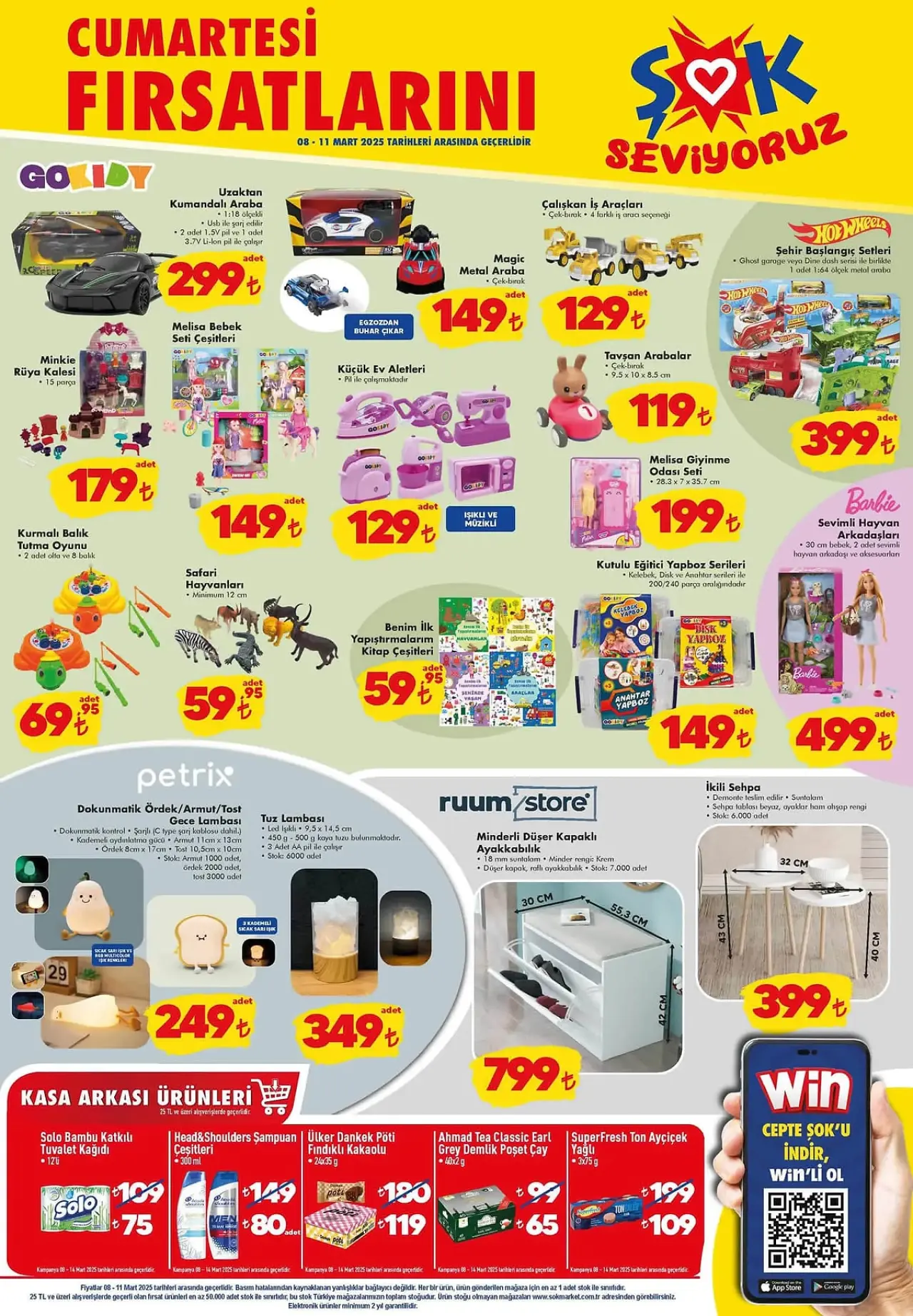 ŞOK'taki indirimler, 25 TL ve üzeri alışverişlerde geçerli fırsatlarla daha da cazip hale geliyor. Özellikle aktüel katalogda yer alan Petrix Dokunmatik Ördek / Armut / Tost Gece Lambası 249 TL ve Petrix Tuz Lambası 349 TL fiyatlarla evinize şıklık katmak için harika bir seçenek. Ayrıca, Barbie Sevimli Hayvan Arkadaşlar 499 TL fiyatla raflarda yerini alıyor.