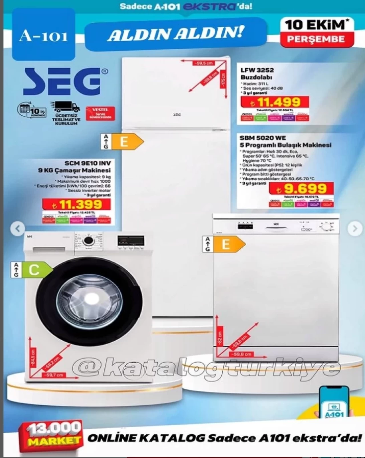 Bununla beraber beyaz eşya ve klima ihtiyacı olanlar içinde cazip fiyatlarını ve taksit seçeneklerini sunan A101, müşterilerinin yüzünü güldürmeye devam ediyor.