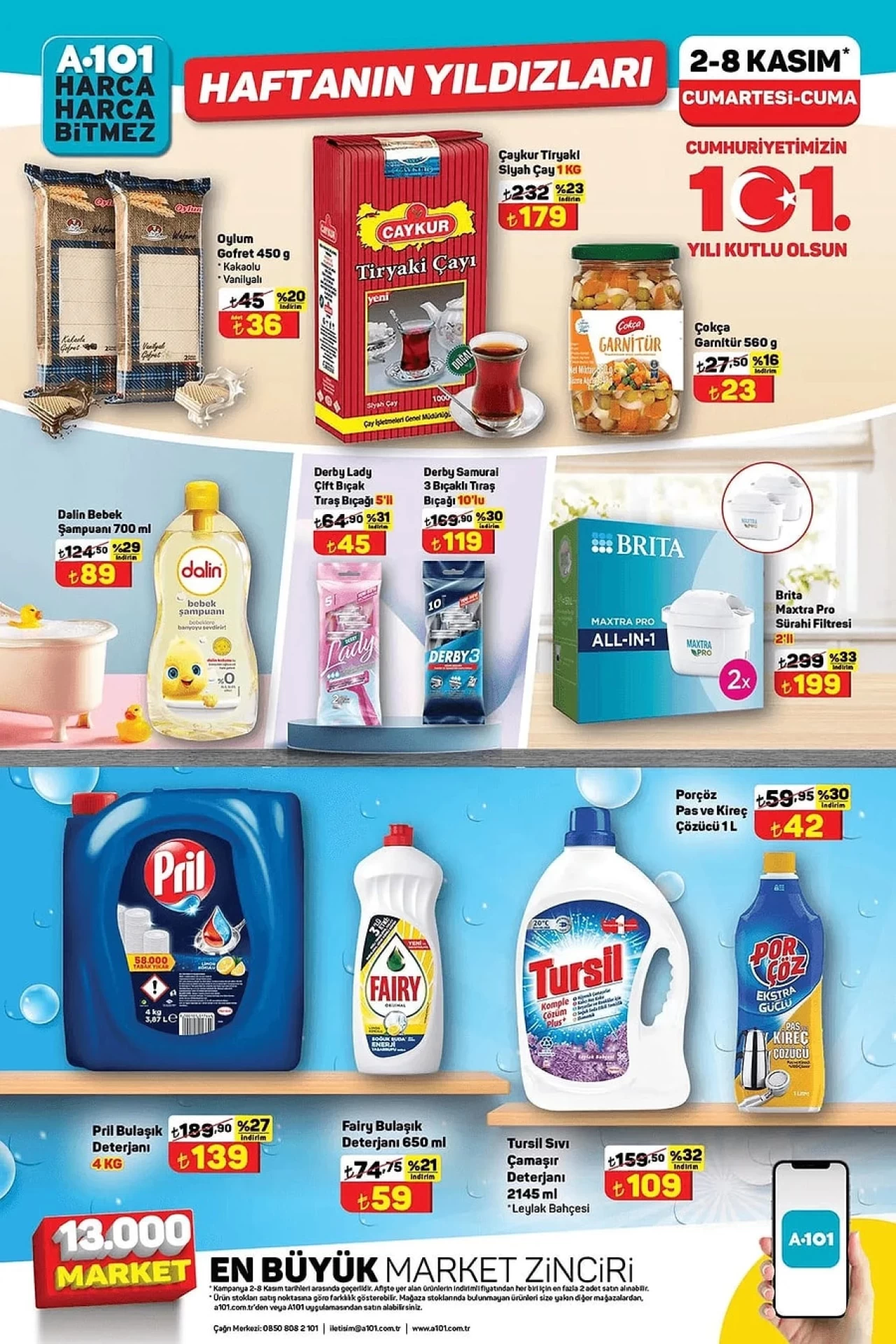 Türkiye'nin en büyük market zincirlerinden biri olan A101, 2 Kasım 2024 itibariyle güncel katalog listesini müşterileriyle buluşturuyor. Gıdadan temizlik ürünlerine, bebek bakımından atıştırmalıklara kadar pek çok kategoride fırsatları yakalamak için A101 broşürünü mutlaka inceleyin.