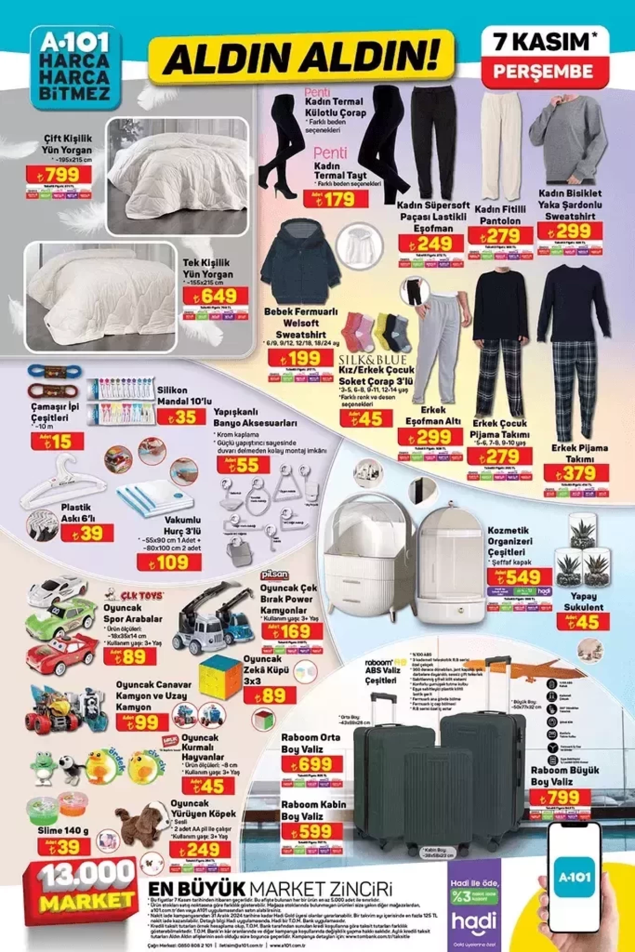 A101 Aldın Aldın 7 Kasım kataloğunda yer alan ürünler, sınırlı stoklarla sunulacak. Müşterilerin bu fırsatları kaçırmamak için A101 mağazalarına erken saatlerde gitmeleri öneriliyor. Ayrıca, haftanın öne çıkan ürünleri, kullanıcıların ihtiyaçlarına yönelik geniş bir yelpazeyi kapsıyor.