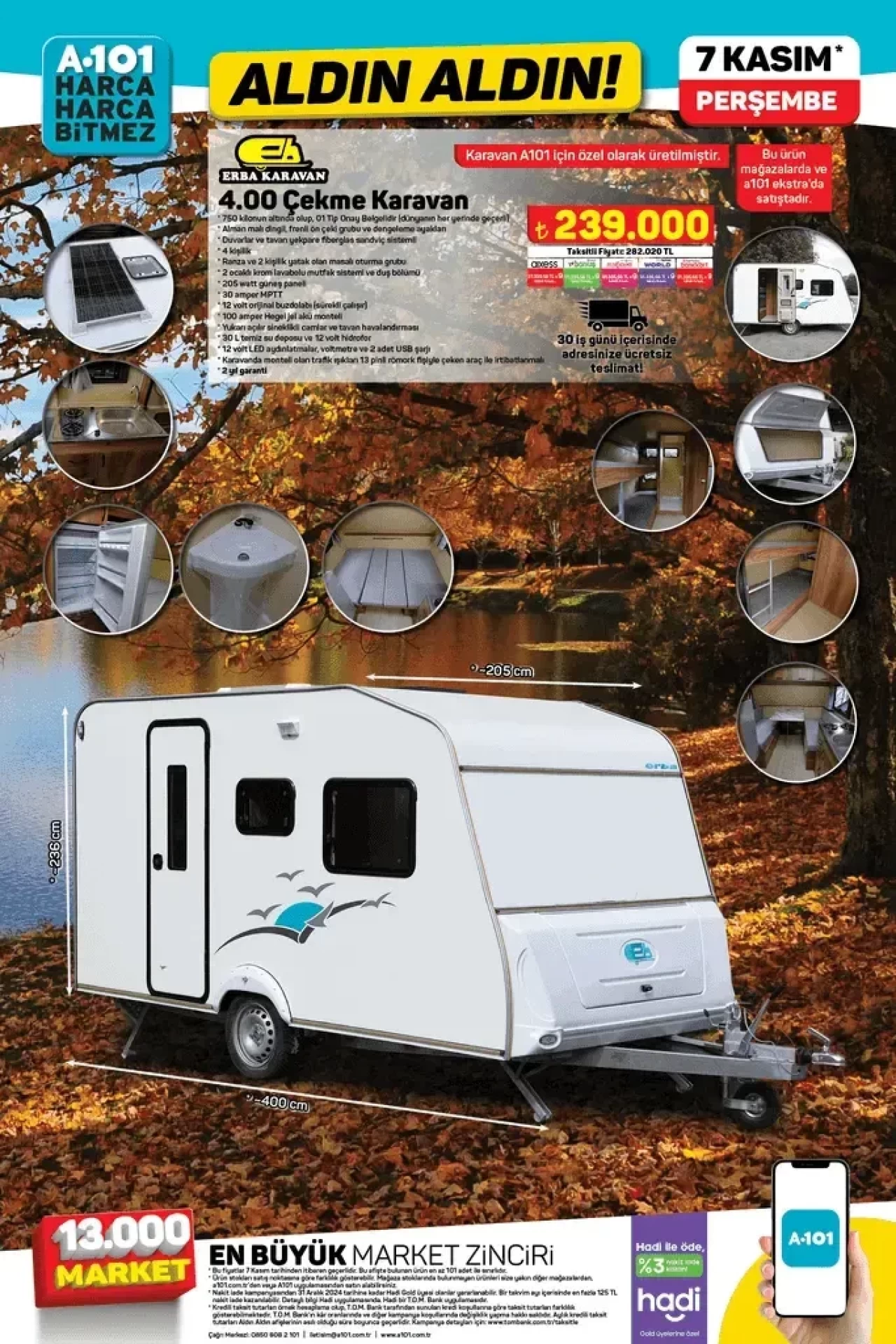 Çekme Karavan: A101, tatil planı yapanlar için uygun fiyatlı bir çekme karavan seçeneği sunarak doğa severleri sevindiriyor.