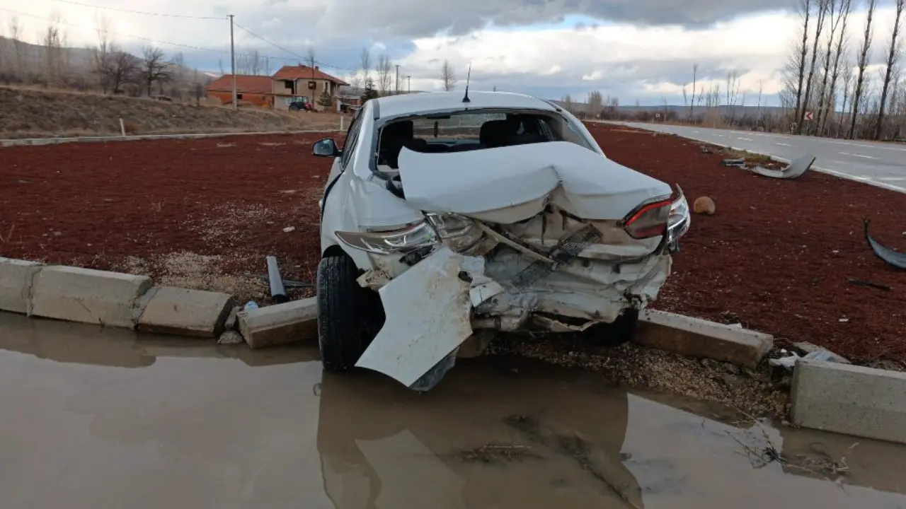 Çarpışmanın Şiddetiyle Araçlardan Biri Orta Refüje Çıktı