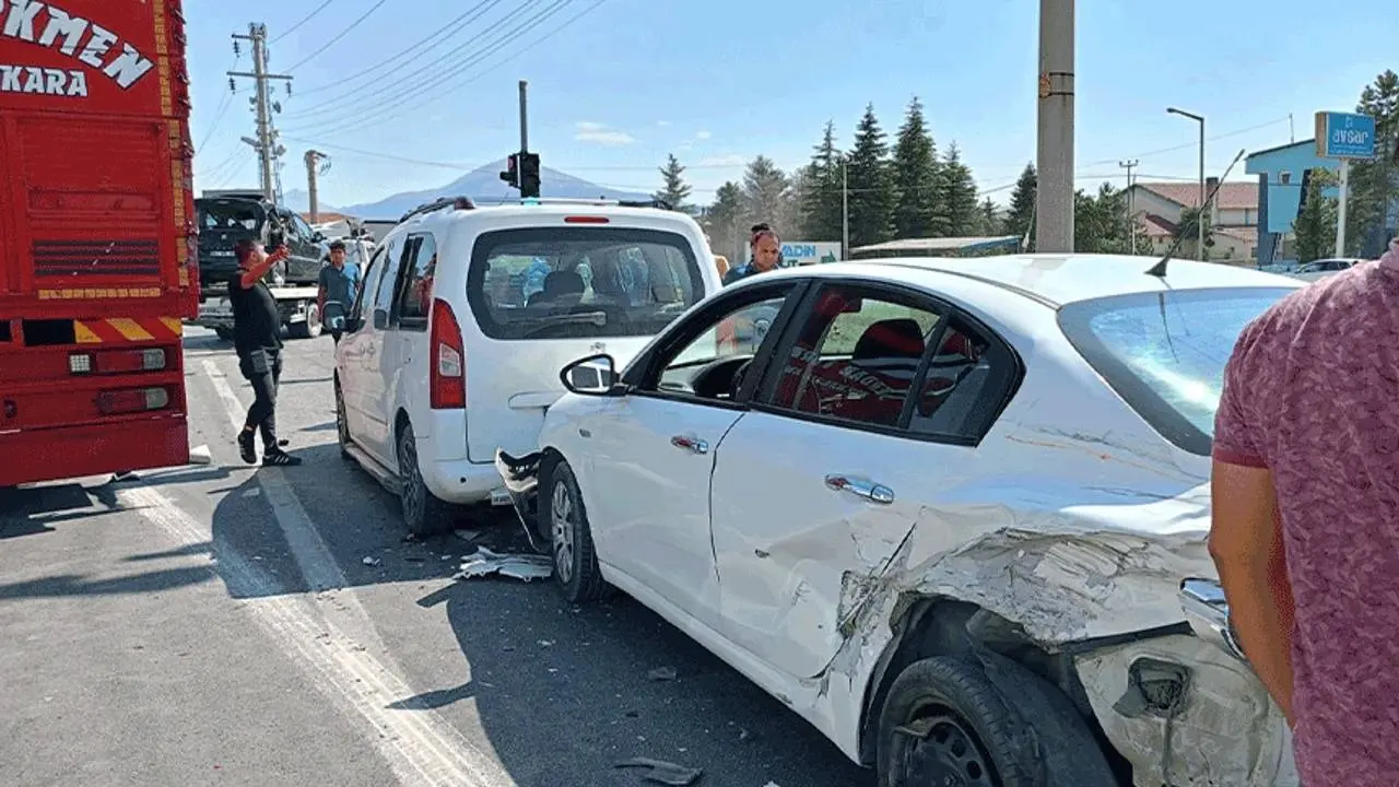 Olay, Afyonkarahisar’ın Filli Kavşak mevkiinde meydana geldi. Alınan bilgilere göre, M.E.Ç. yönetimindeki şehir içi yolcu minibüsü, Y.S.A.’nın (20) kullandığı otomobile çarptı. Çarpışmanın etkisiyle çevrede park halinde bulunan üç araç daha kazaya karıştı.