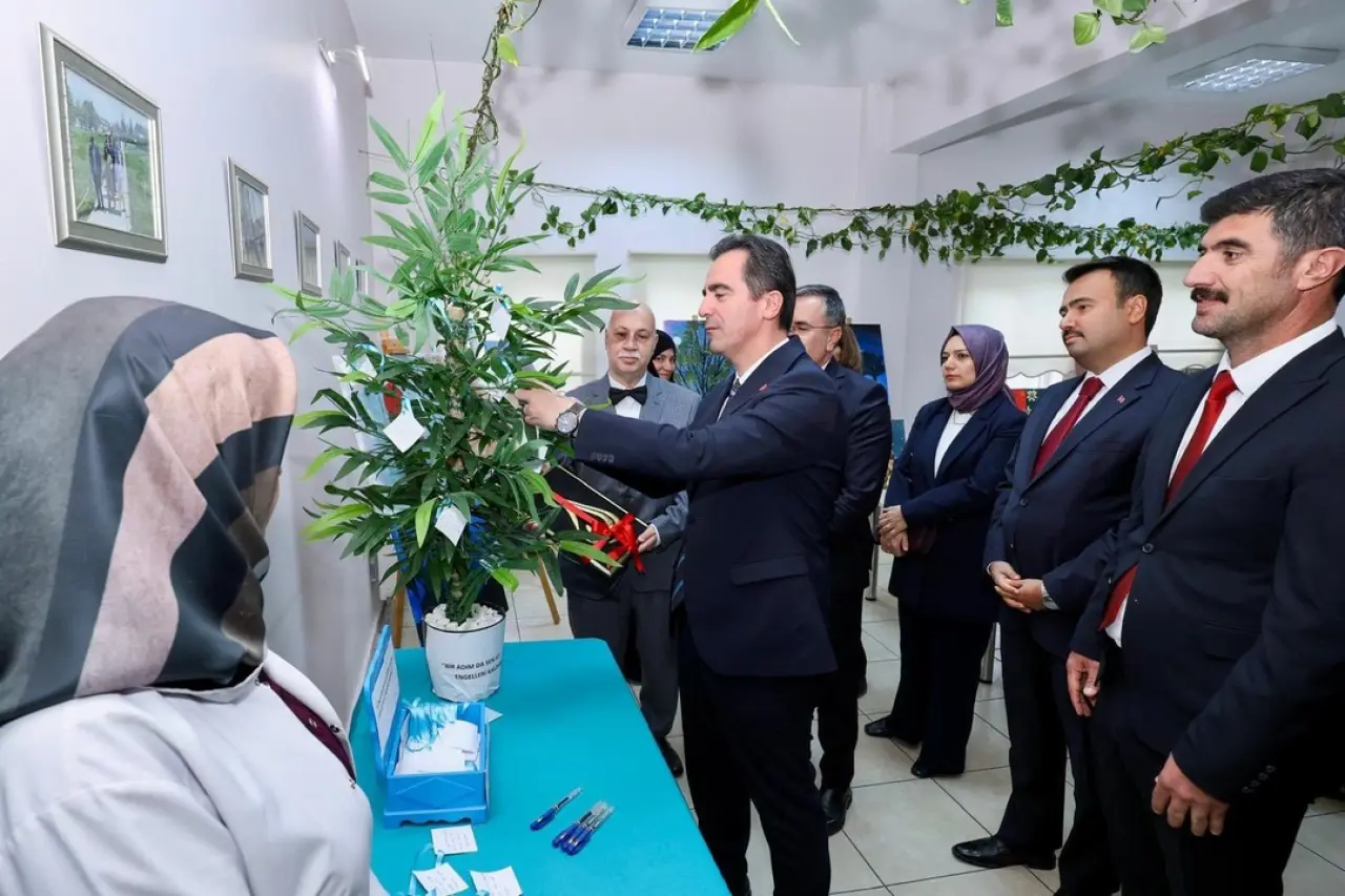 Vali Karakaya, engelli bireylerin hazırladığı sergiyi gezerek el emeği ürünleri inceledi. Etkinlik saygı duruşu ve İstiklal Marşı ile başladı.