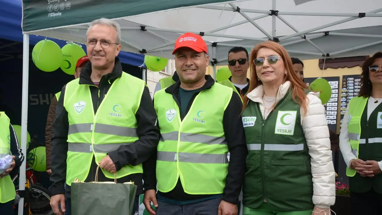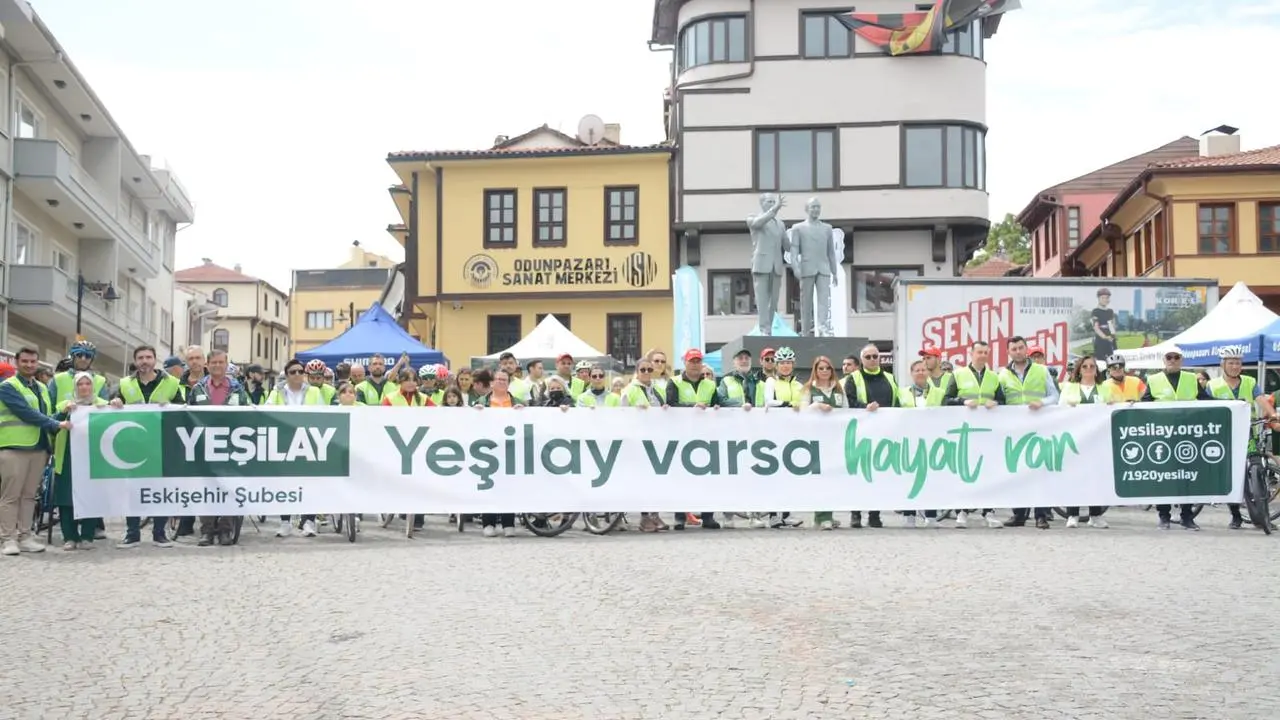 Yeşilay tarafından düzenlenen 12. Yeşilay Bisiklet Turu'nun Eskişehir etkinliği, Odunpazarı Meydanı'nda geniş katılımla gerçekleştirildi.