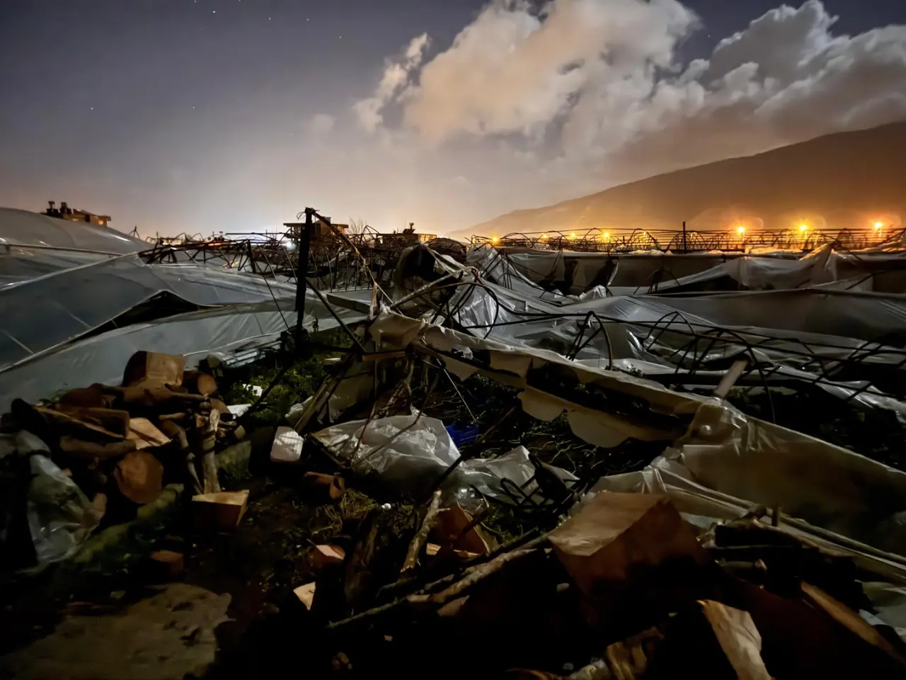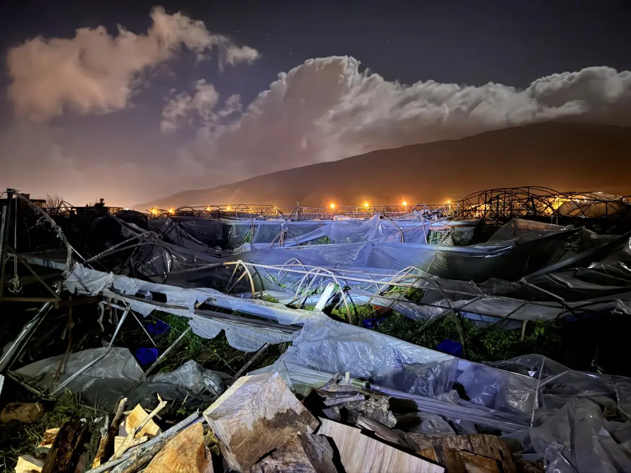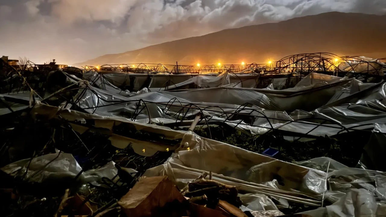 Saklısu Mahallesi'nde denizde oluşan hortum, domates ve biber yetiştirilen seraları tamamen tahrip etti. Enerji hatlarının kopmasıyla bölge karanlığa gömüldü.