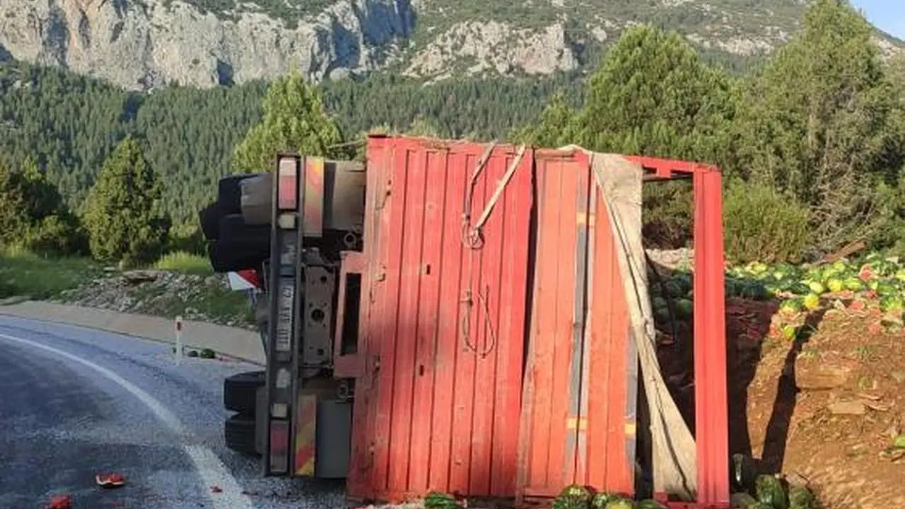 Antalya'da dün akşam saatlerinde meydana gelen üzücü bir kazada, karpuz yüklü bir kamyon devrilerek tonlarca karpuz yol kenarına saçıldı. Kaza, İbradı - Akseki kara yolu Düzlen Mahallesi yakınlarında gerçekleşti. Şoför, kazadan yara almadan kurtulmayı başarırken, devrilen kamyonun taşıdığı karpuzlar etrafa yayıldı. Jandarma ekipleri olayla ilgili inceleme başlattı.