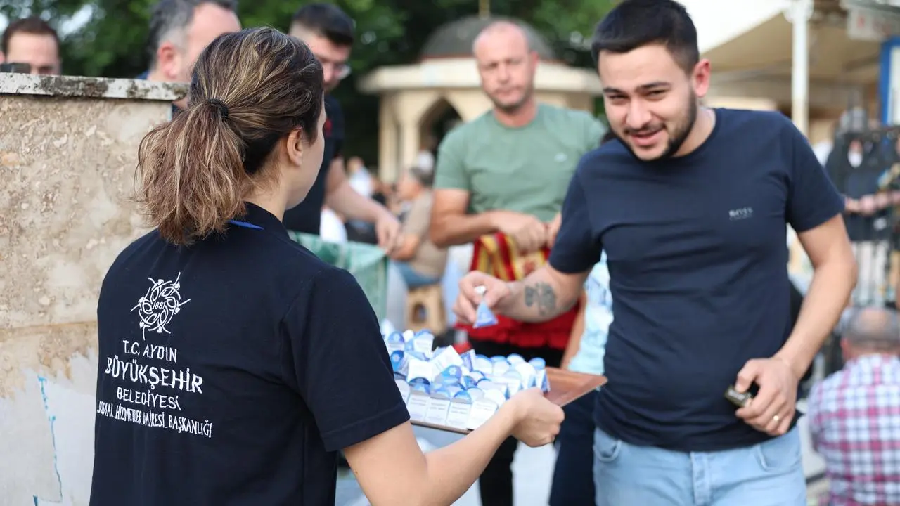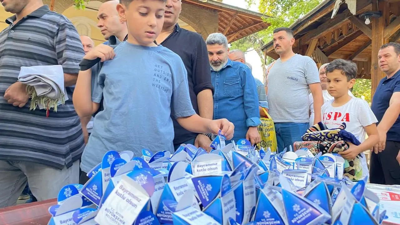Aydın Büyükşehir Belediyesi, Kurban Bayramı'nda cami çıkışlarında vatandaşlara lokum ikram ederek bayram coşkusunu paylaştı.