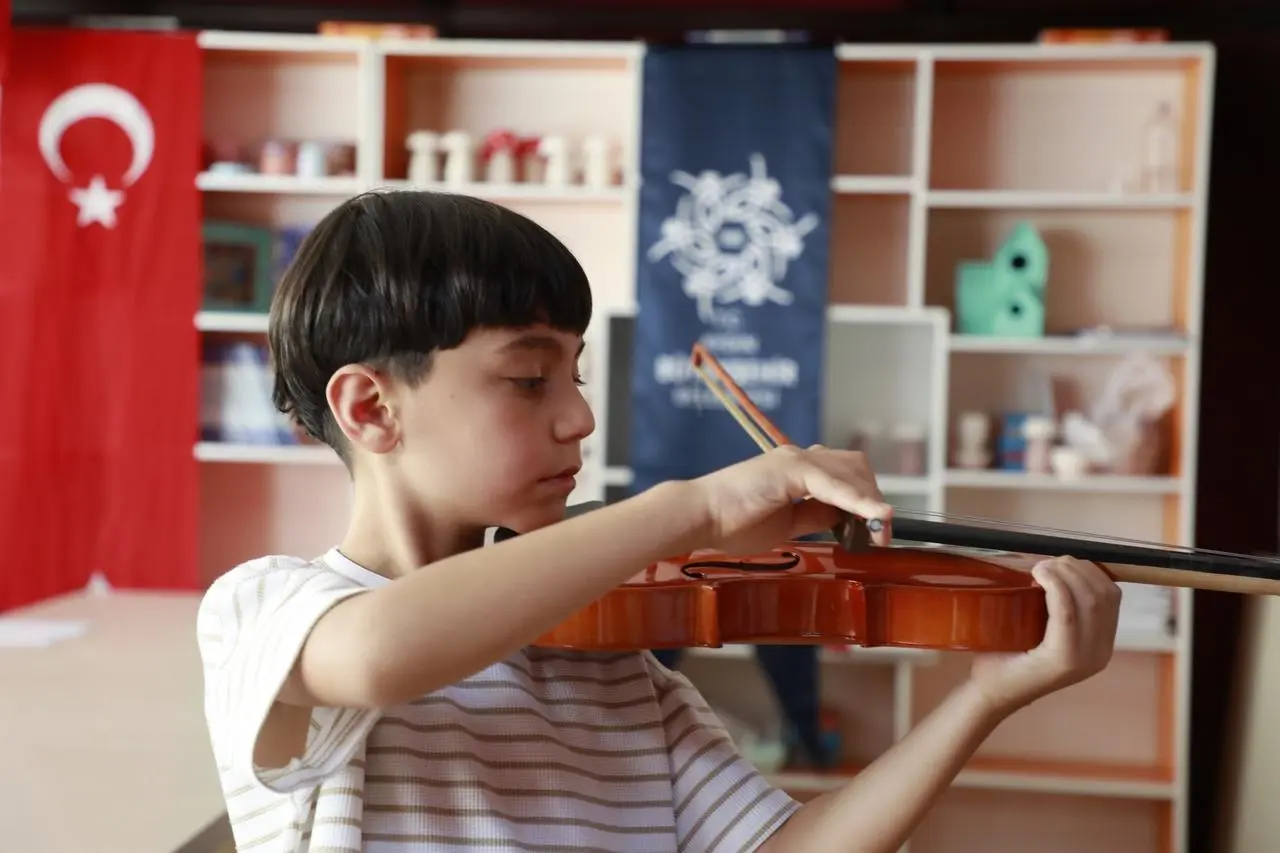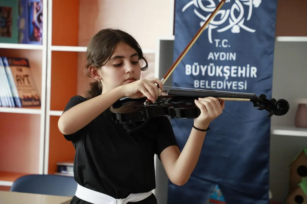 Aydın Büyükşehir Belediyesi'nin yaz kursları kapsamında düzenlediği keman eğitimleri, çocukların sanatsal gelişimine katkı sağlıyor. Klasik müziğin zarif tınıları eşliğinde gerçekleşen kurslarda, çocuklar temel keman tekniklerini öğreniyor.