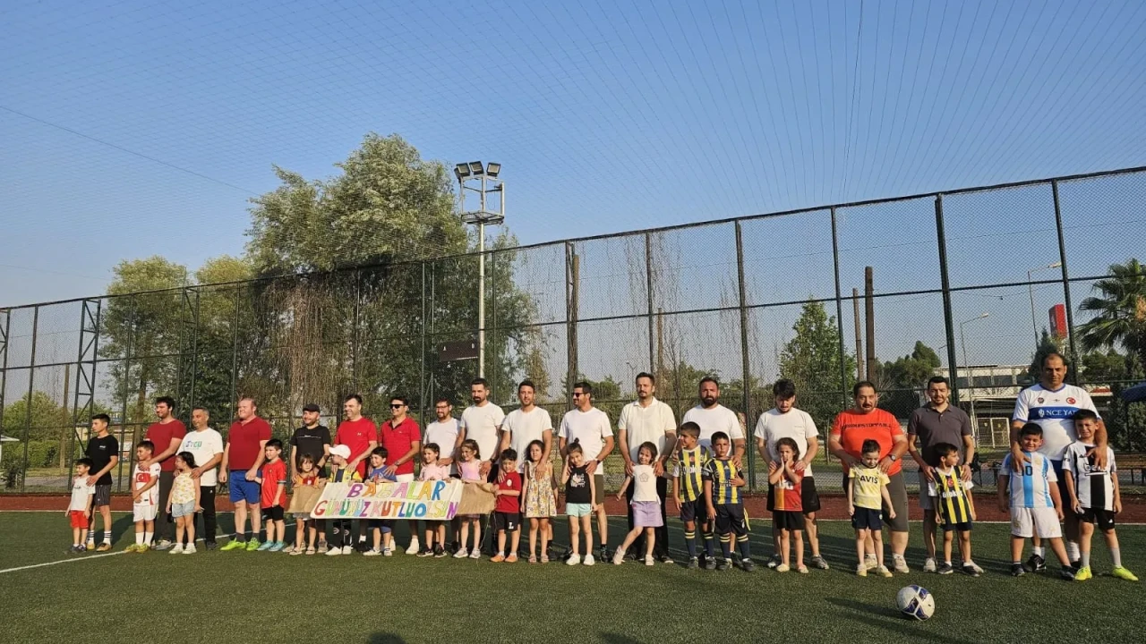 Aydın'da düzenlenen Babalar Günü halı saha maçında kız ve erkek çocuklarının babaları karşı karşıya geldi.