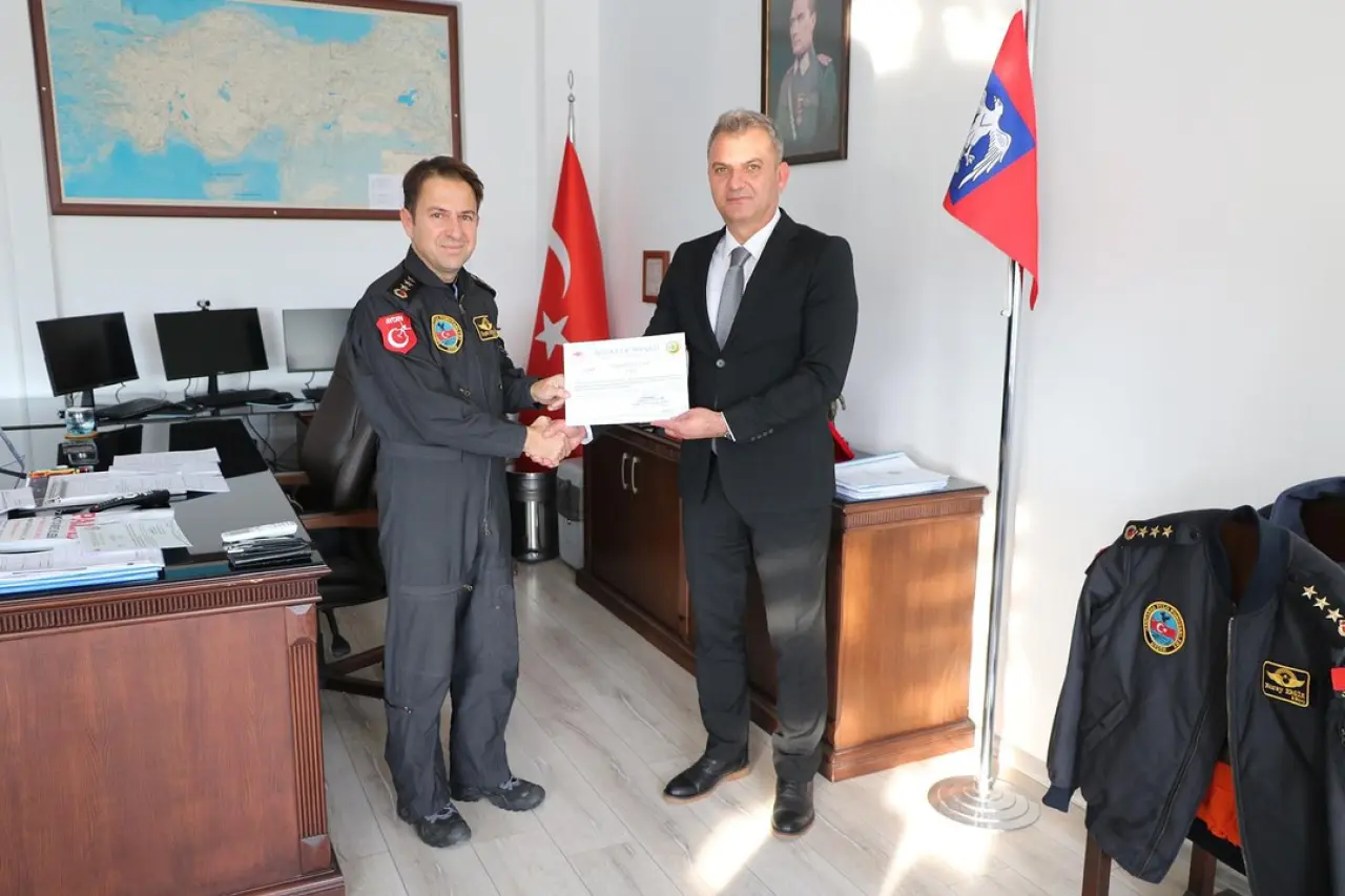 Aydın Jandarma Helikopter Filo Komutanlığı ekibi, 2025 yangın sezonunda gösterdikleri özveriyle teşekkür belgesi aldı. Muğla Orman Bölge Müdürü Mustafa Ülküdür, ekipleri ziyaret ederek minnettarlığını iletti.