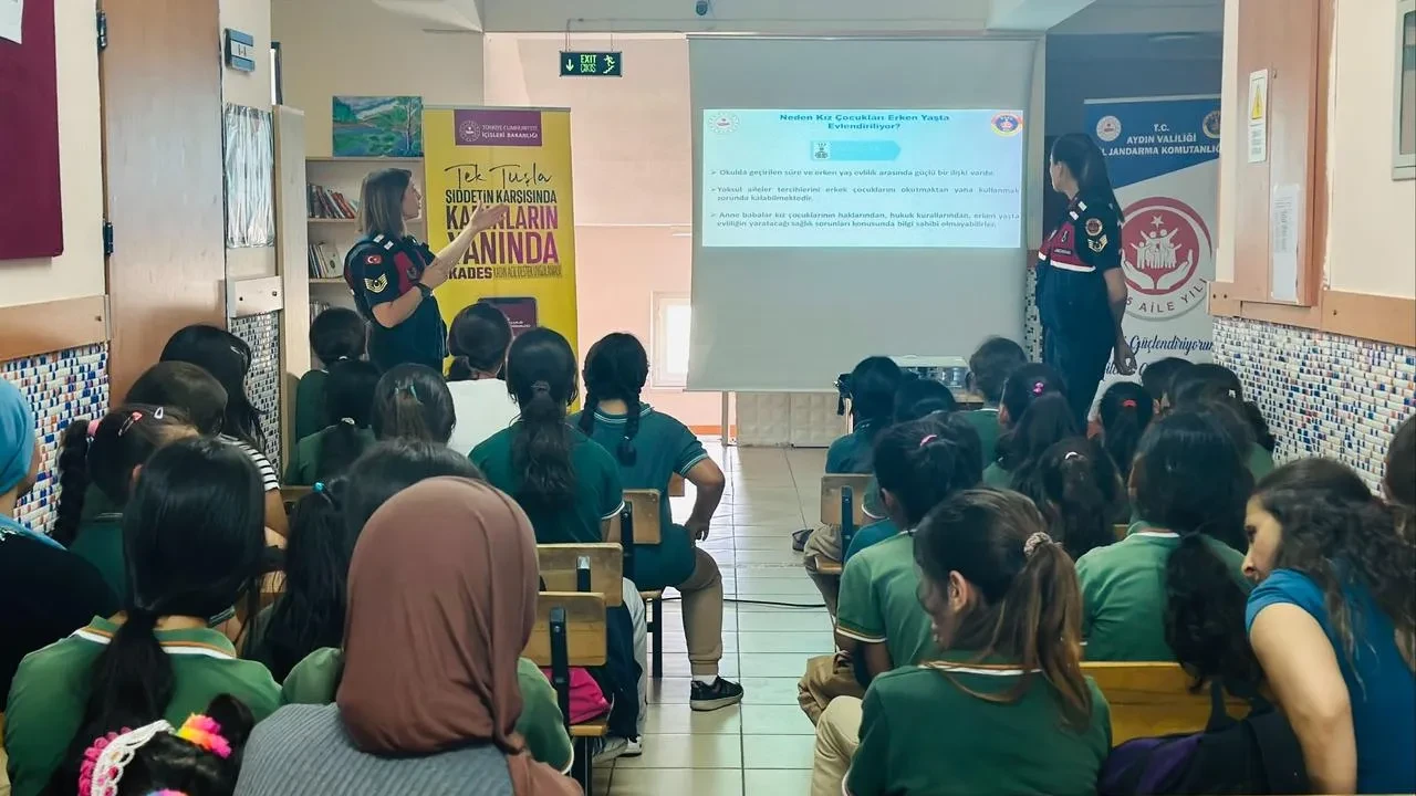 Aydın İl Jandarma Komutanlığı ekipleri, öğrencilere yönelik şiddet ve suça karşı farkındalık eğitimi düzenledi.