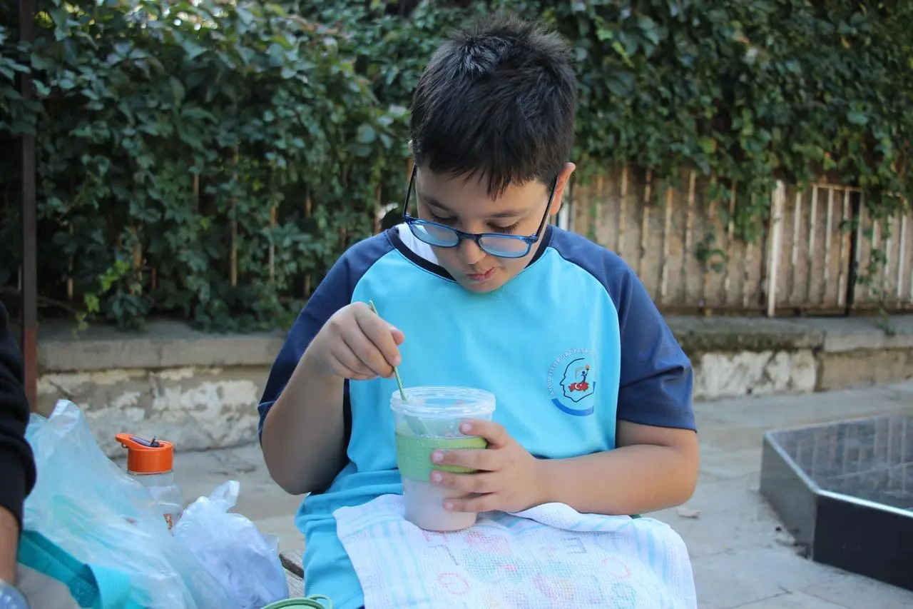 Öğrenciler evden getirdikleri yemekleri yağmurlu günlerde sınıflarda yiyebiliyor. Diğer zamanlarda ise sokakta yemek yemek zorunda kalıyorlar.