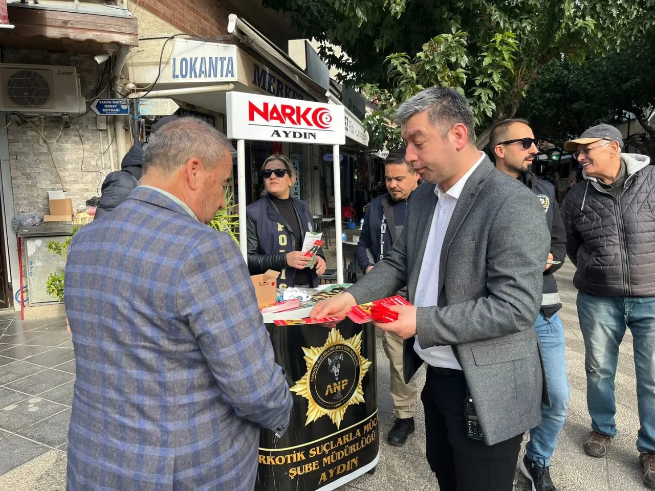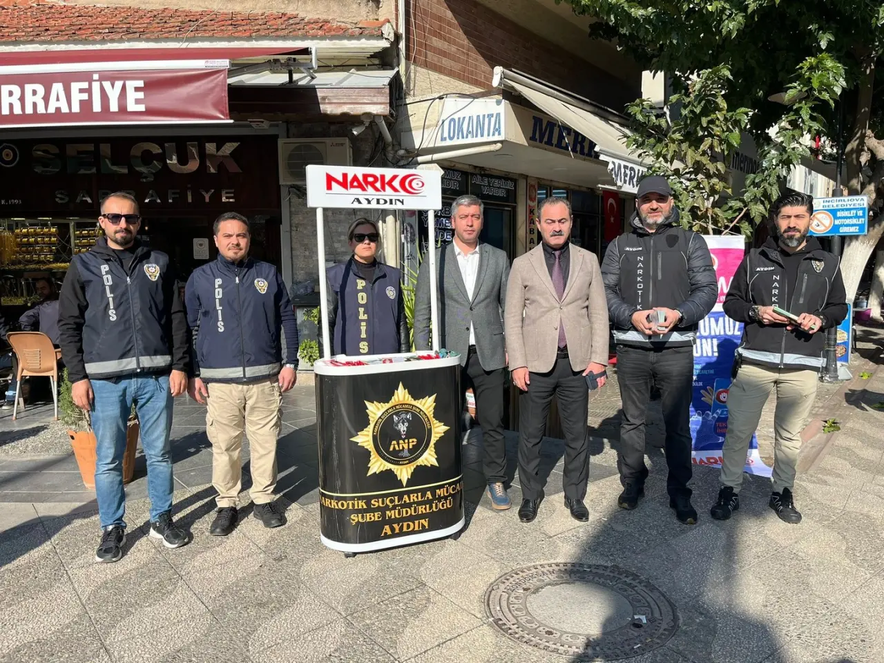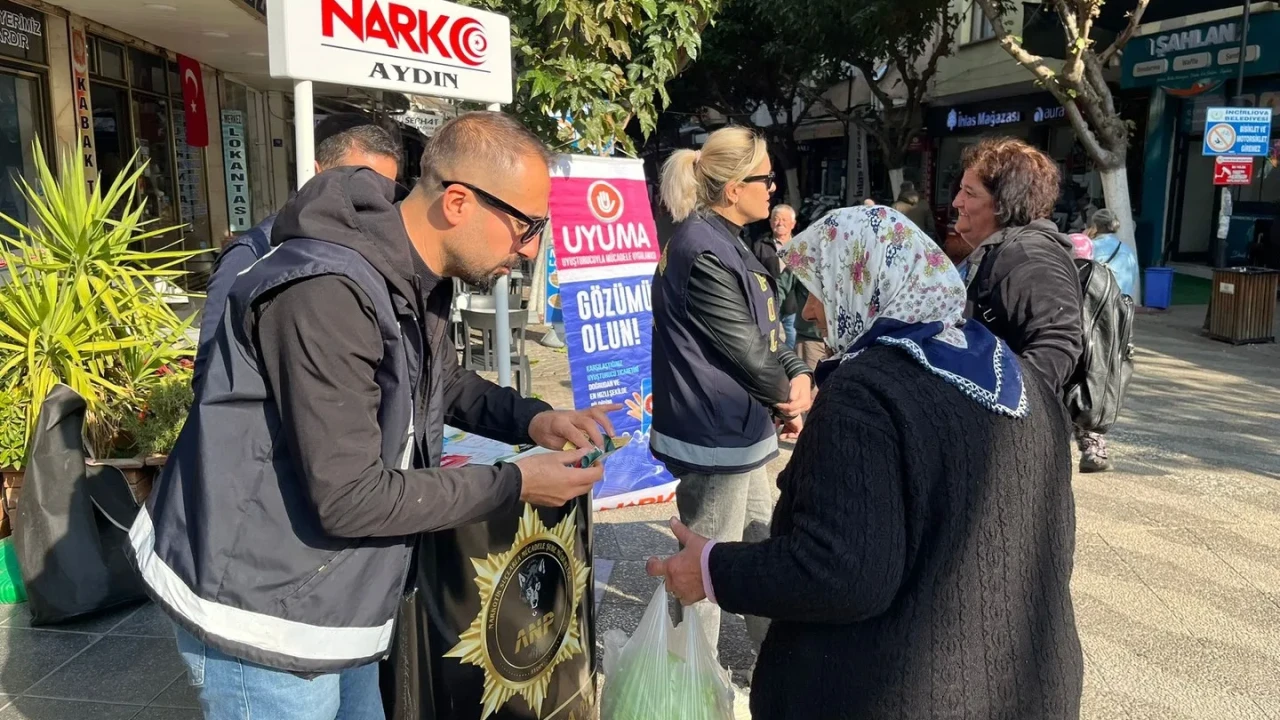 Aydın'da polis ekipleri, uyuşturucuyla mücadele kapsamında İncirliova'da vatandaşları bilgilendirmek için stant açtı.