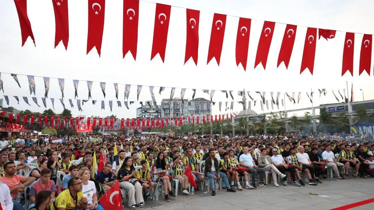 Atatürk Kent Meydanı'nda kurulan dev ekran sayesinde yüzlerce Fenerbahçe taraftarı maçı birlikte izleme fırsatı buldu. Taraftarlar maç boyunca tezahüratlarla takımlarına destek verdi.